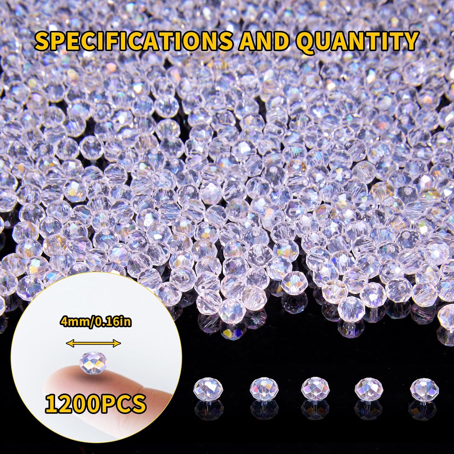 1200Pcs 4mm Crystal Glass Beads for Jewelry Making Beads for Bracelets Necklace Pendants Making Supplies(Light Purple)