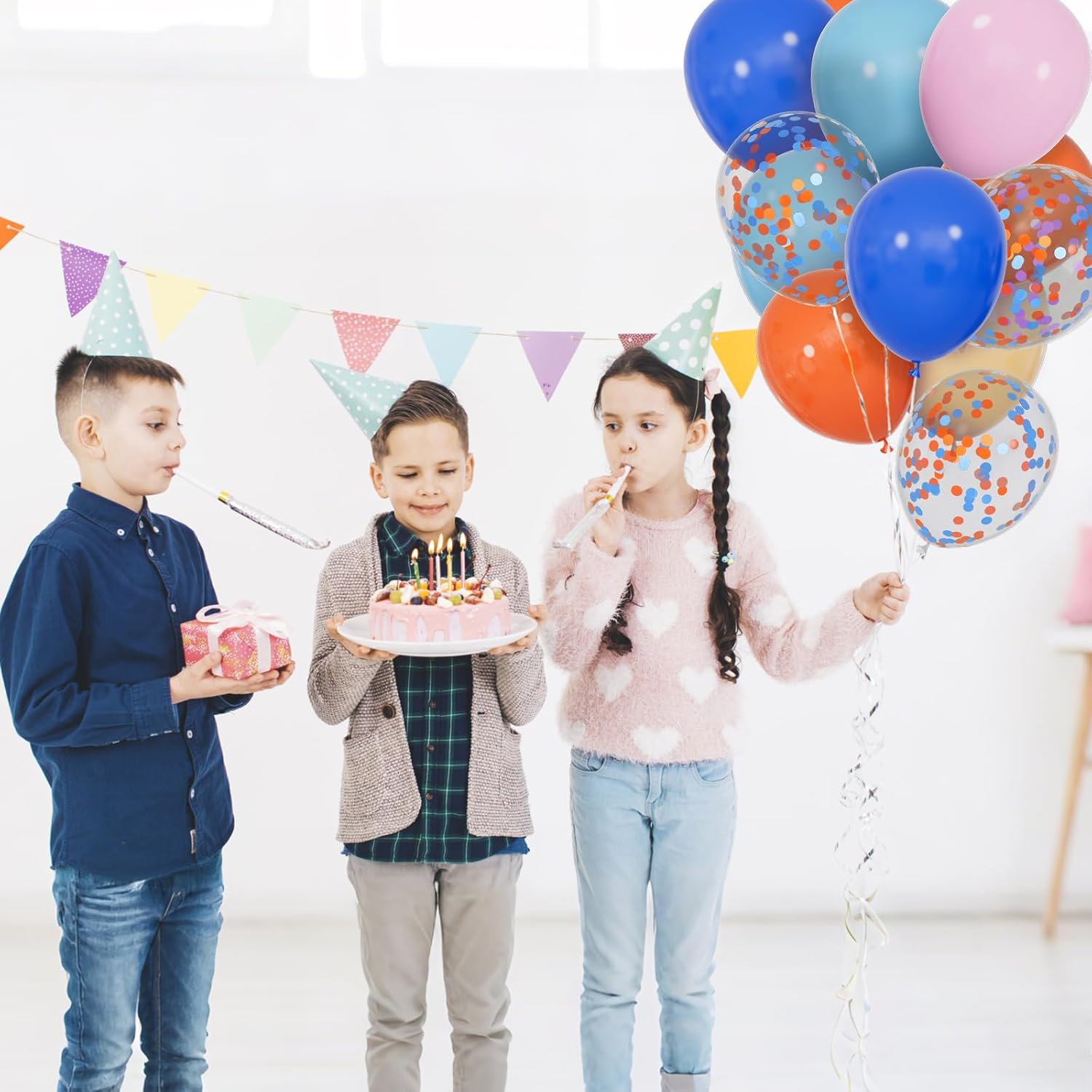 • Blue party decorations One set of combination covers at the same time: blue themed birthday party decorations Sush as autumn harvest style (orange + blue = pumpkin color + sunny sky) beach vacation style (blue + skin tone + sequins = waves/sand/sunshine) varsity support style (accurately matching blue and orange themed teams) non-traditional festivals (e.g., whimsical sense of Halloween) eliminates the trouble of color matching and achieves theme switching at low cost.