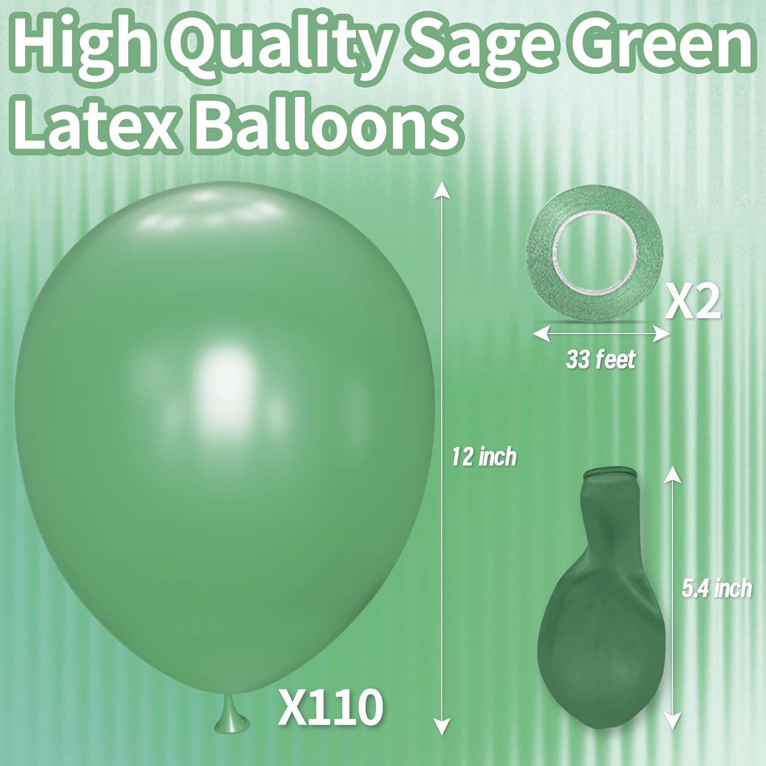 KAWKALSH Sage Green Balloon 12 Inch, 110pcs Latex Party Balloons Helium Bright Color for Birthday Baby Shower Wedding Party Supplies Arch Garland Decoration