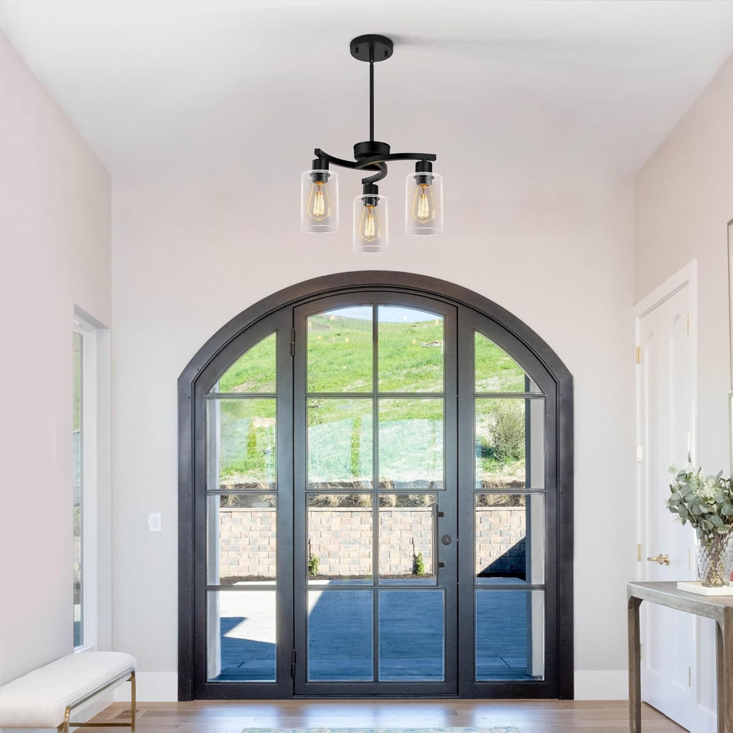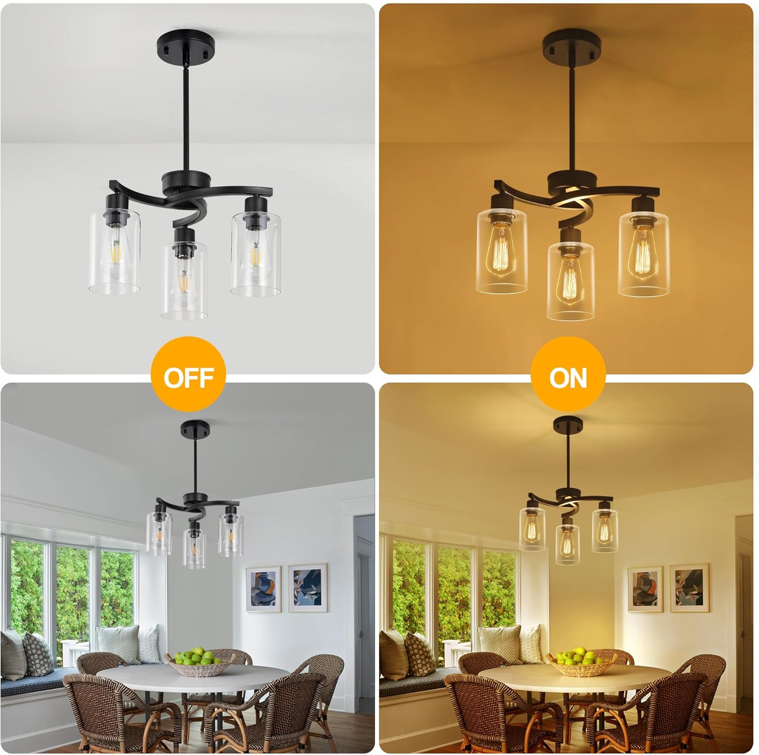 • Modern Style: Glass pendant light has 3 arms that radiate outward from the central arc, presenting a simple but not simple beauty. The body of the black chandelier is made of high quality matte black metal with a fine polished surface. The clear glass shade not only ensures the soft scattering of light, but also complements the cold and hard texture of the metal, making the whole modern glass light fixture both powerful and delicate. The downward-facing glass shade does not easily accumulate dust and is easy to clean.