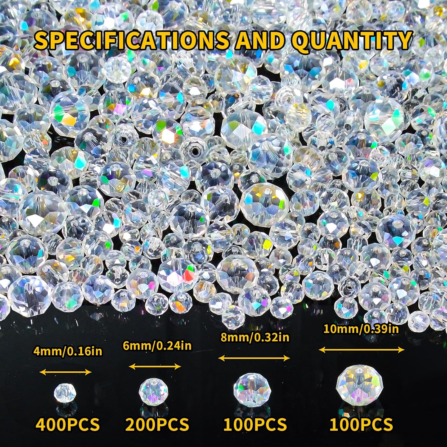 800Pcs 4/6/8/10mm Crystal Glass Beads for Jewelry Making Beads for Bracelets Necklace Pendants Making Supplies(White AB Color)
