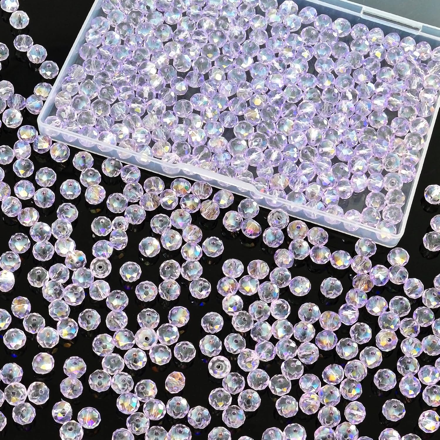 460Pcs 8mm Crystal Glass Beads for Jewelry Making Beads for Bracelets Necklace Pendants Making Supplies(Light Purple)