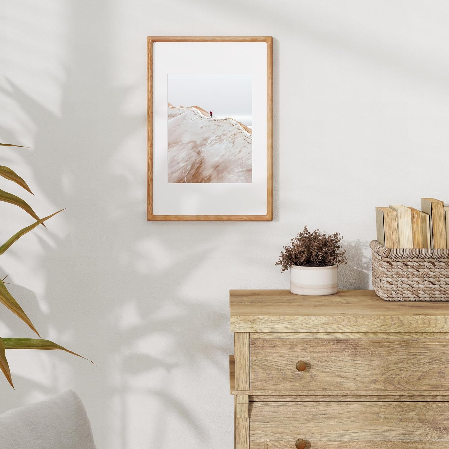 • Handmade Crafted: Each wood frame is meticulously handcrafted, ensuring exceptional precision and attention to detail. The elegantly rounded corners not only enhance its sophistication but also provide a safe, smooth edge that is perfect for families with children. Our frames are crafted using advanced mortise and tenon joinery, reinforced with hardwood splines at each corner, ensuring a nail-free construction that delivers exceptional stability and lasting durability.