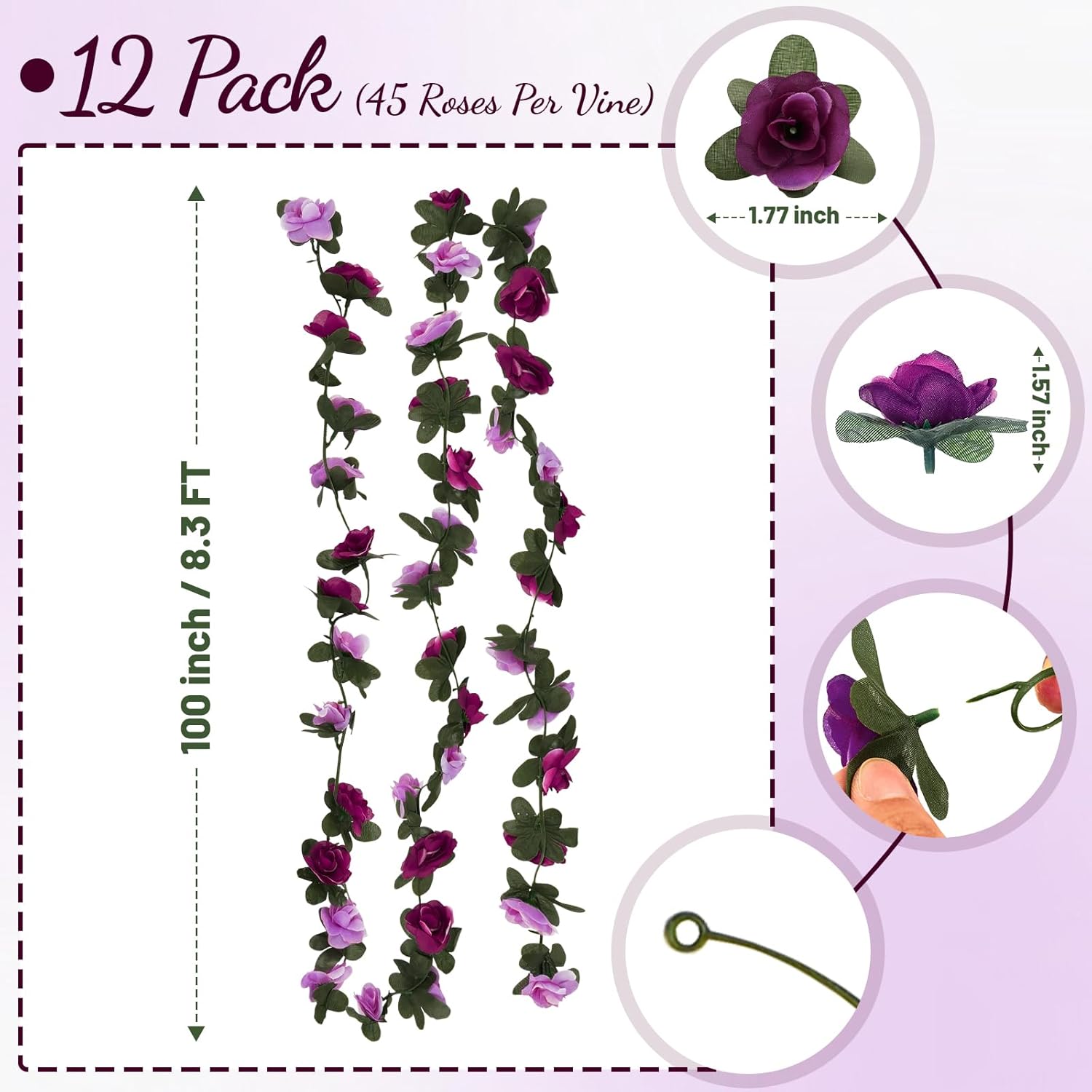• Easy Installation & Versatile Use: Lightweight and flexible, our rose garland is easy to install. Each vine includes a hook design, making it simple to hang or bend to fit your needs. Perfect for decorating indoors or outdoors—on walls, windows, and garden arches—these versatile flower garlands enhance any setting.
