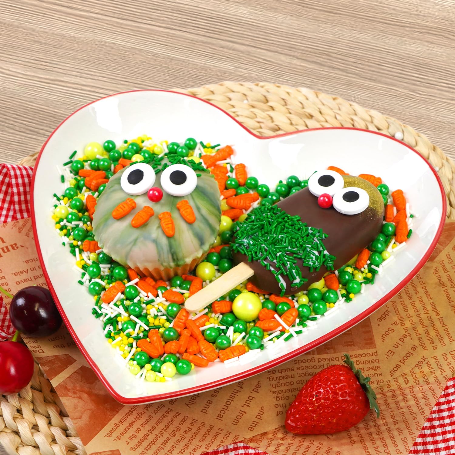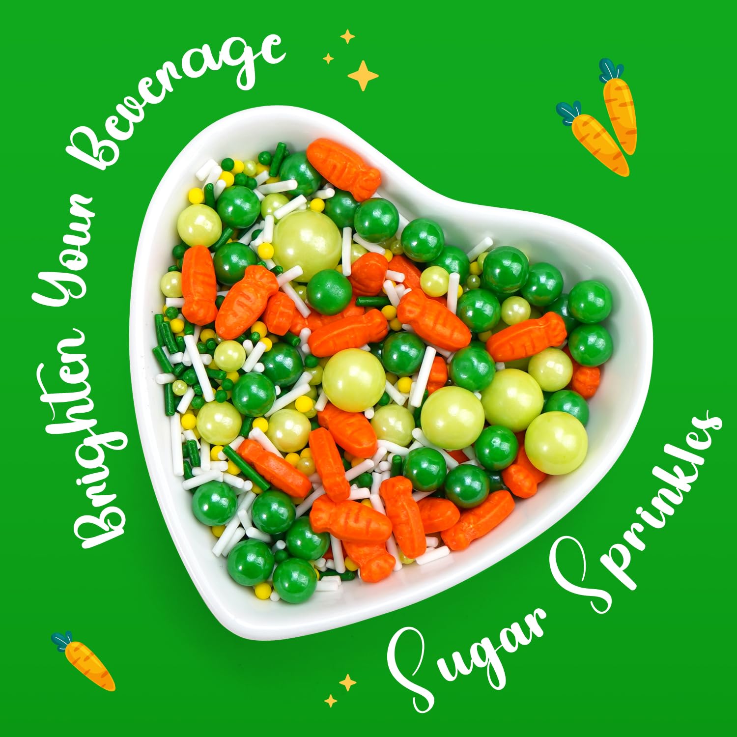 • Our Easter Green Sprinkles are a mix of sugar carrot candies and colorful jimmies nonpareils. They are perfect for adorning Easter-themed cakes. These Edible Easter Sprinkles can be used to decorate cupcakes, cakes, donuts, cookies, ice cream, and waffles, adding that extra dash of festivity.