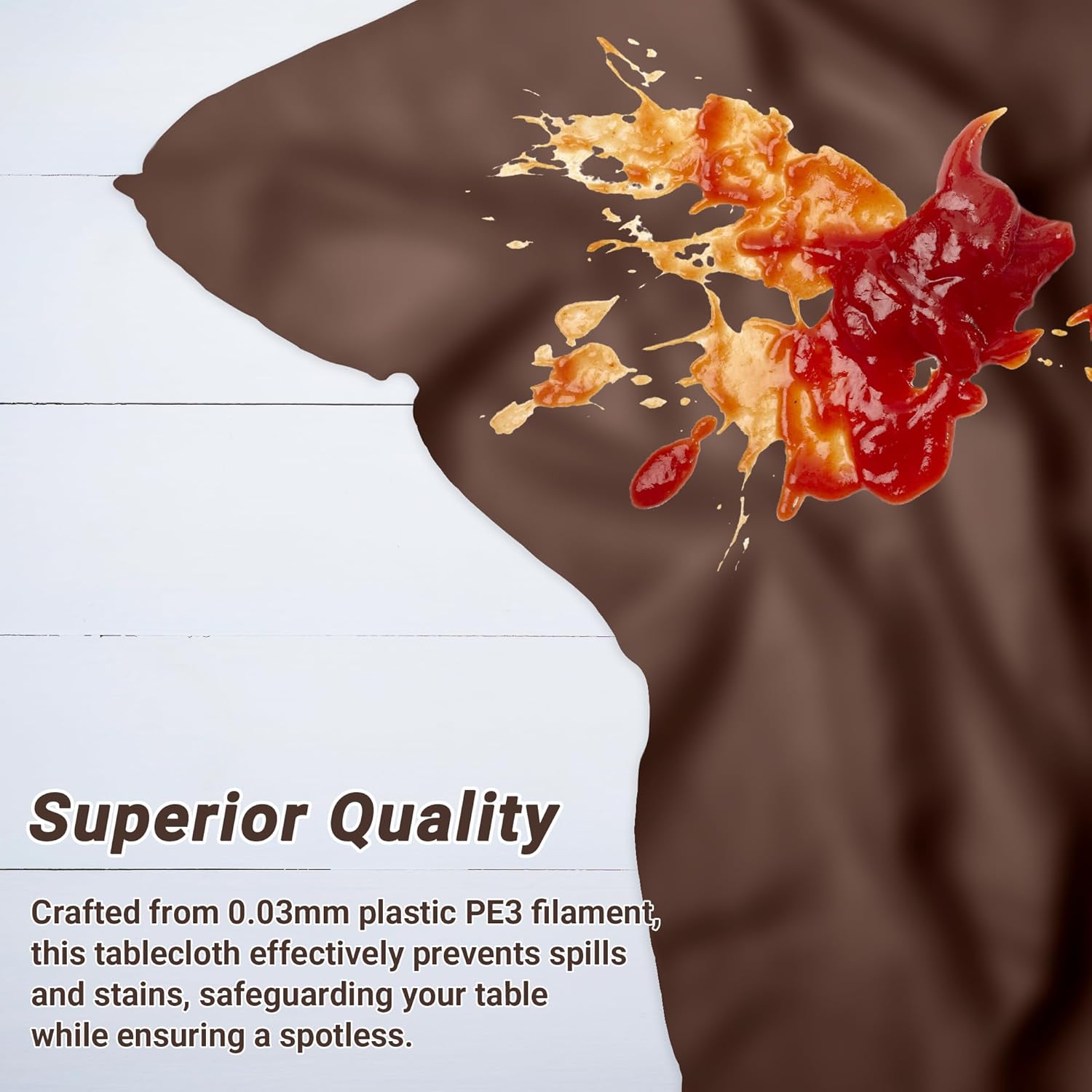 • Premium Quality: Crafted from 0.03mm premium PE3 plastic, this brown table cloth resists spills, stains, and messes, making it perfect for lively gatherings, such as BBQ party decorations or picnic birthday party decorations. The oil-proof surface repels grease, while the picnic table cover solid design allows for easy cleaning and adjustment, ensuring a flawless presentation at any event.