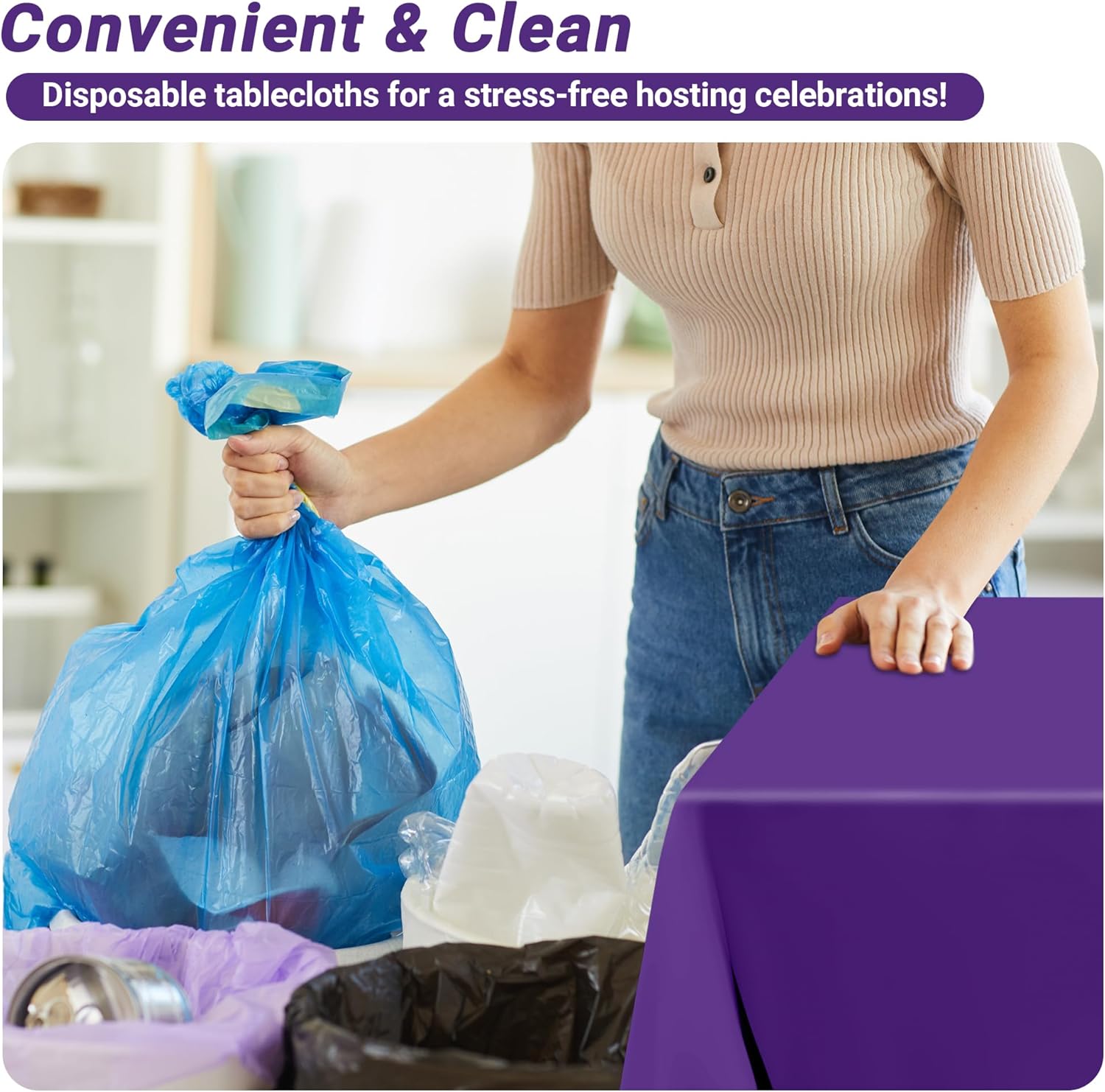 • Quick and Convenient: Embrace the convenience of this disposable plastic table cloth designed for juggling multiple party decorations. After bridal shower decorations and graduation decor, simply gather the table cover and toss it—no scrubbing. The lightweight material is easy to store, perfect for planners prepping events like iridescent party decorations and senior night decorations, ensuring you have more time to accompany guests.