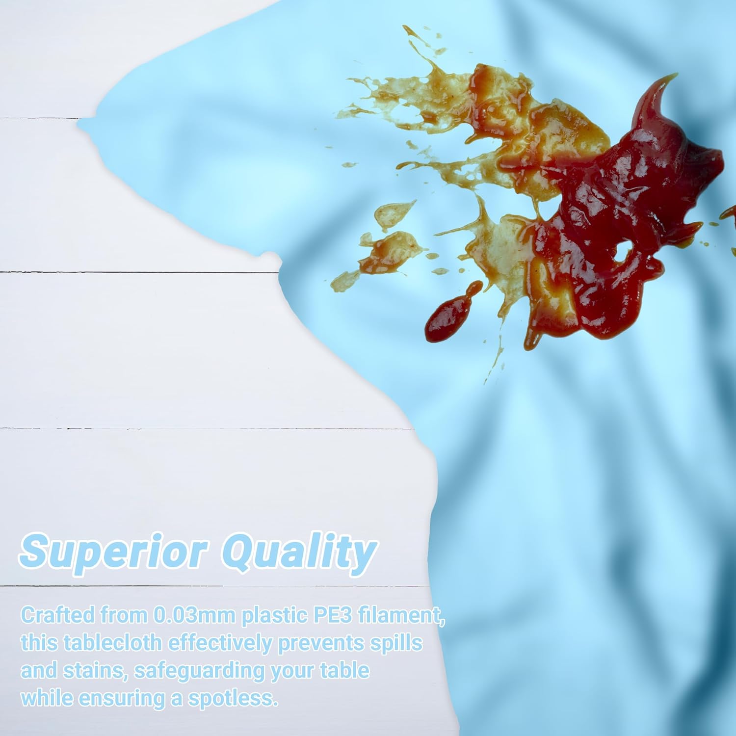 • Superior Quality: Made from 0.03mm premium PE3 plastic, this sky blue table cloth effortlessly repels spills, grease, and stains, making it perfect for vibrant events like baby birthday decorations or outdoor picnic table cover setups. The surface of the waterproof tablecloth ensures messy anniversary table decorations or baby party decorations leave no trace, while the material holds up to repeated adjustments.
