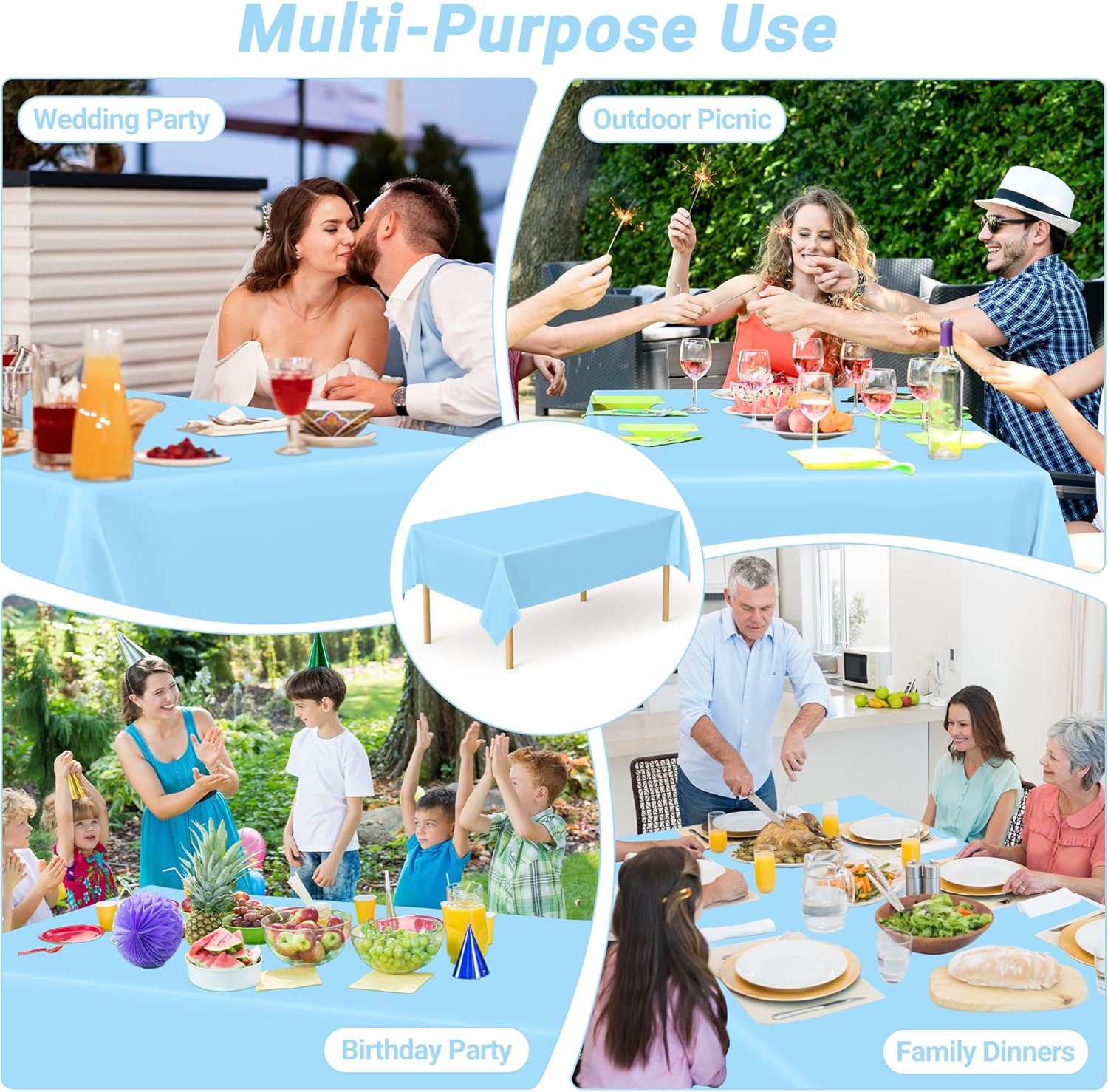 • Rich Color Choices: Simply pick your favorite square table cloths from our rich selection to match your theme perfectly. These 's in sky blue and other hues effortlessly upgrade any event—from wedding decor to home essentials—while protecting surfaces. our plastic table cloth disposable, ensuring you are prepared for any event.
