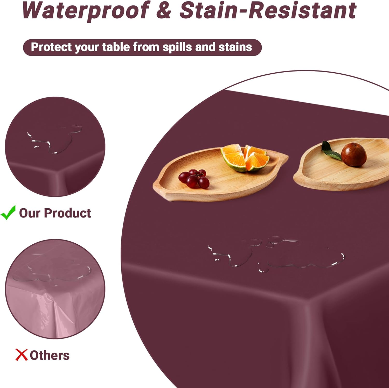 • Rich Color Collection: Elevate events with our wine-red table cloth for picnic table. This bold wine-color design transitions effortlessly from rustic baby birthday decorations to elegant anniversary table setups. our colorful tablecloth provides a versatile color range to perfectly match any event theme or party style, blending style and practicality seamlessly.