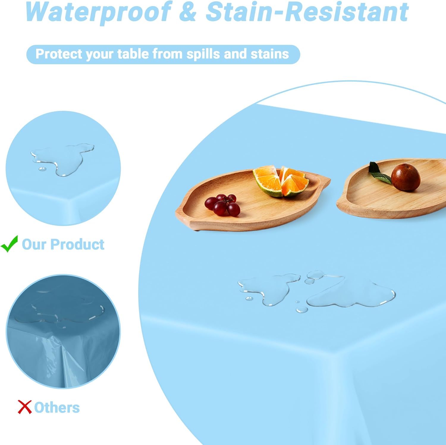 • Superior Quality: Made from 0.03mm premium PE3 plastic, this sky blue table cloth effortlessly repels spills, grease, and stains, making it perfect for vibrant events like baby birthday decorations or outdoor picnic table cover setups. The surface of the waterproof tablecloth ensures messy anniversary table decorations or baby party decorations leave no trace, while the material holds up to repeated adjustments.
