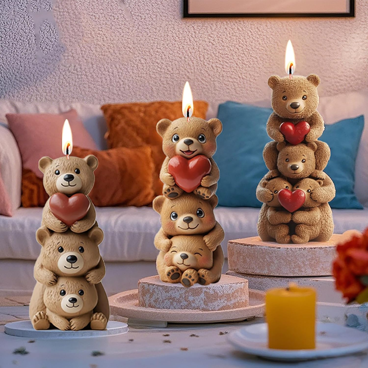 Rose Bear Heart Cylinder Silicone Wave Spiral Candle Mold - Silicone Resin Casting Molds for Candle & Resin & Soap Craft Supplies