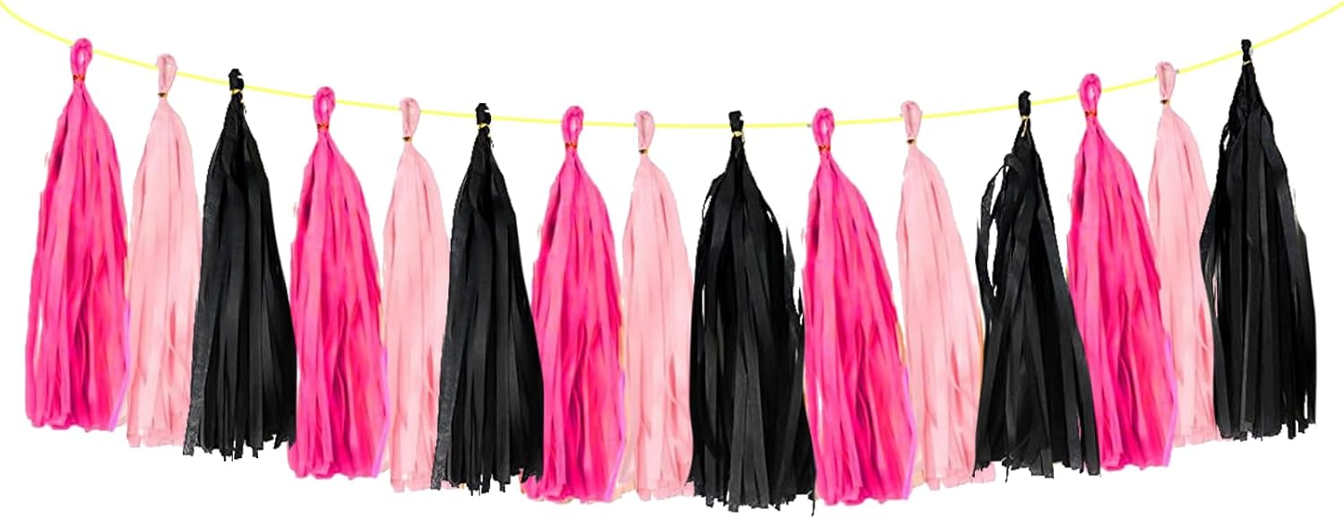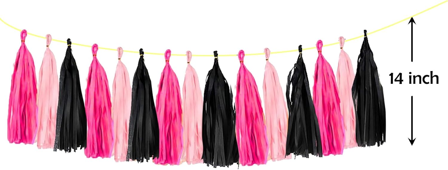 • PACKING:15PCS Tissue Paper Tassels. Color:Hot-pink/Pink/Black. Size: Each tissue paper tassel length: 36cm / 14inch.