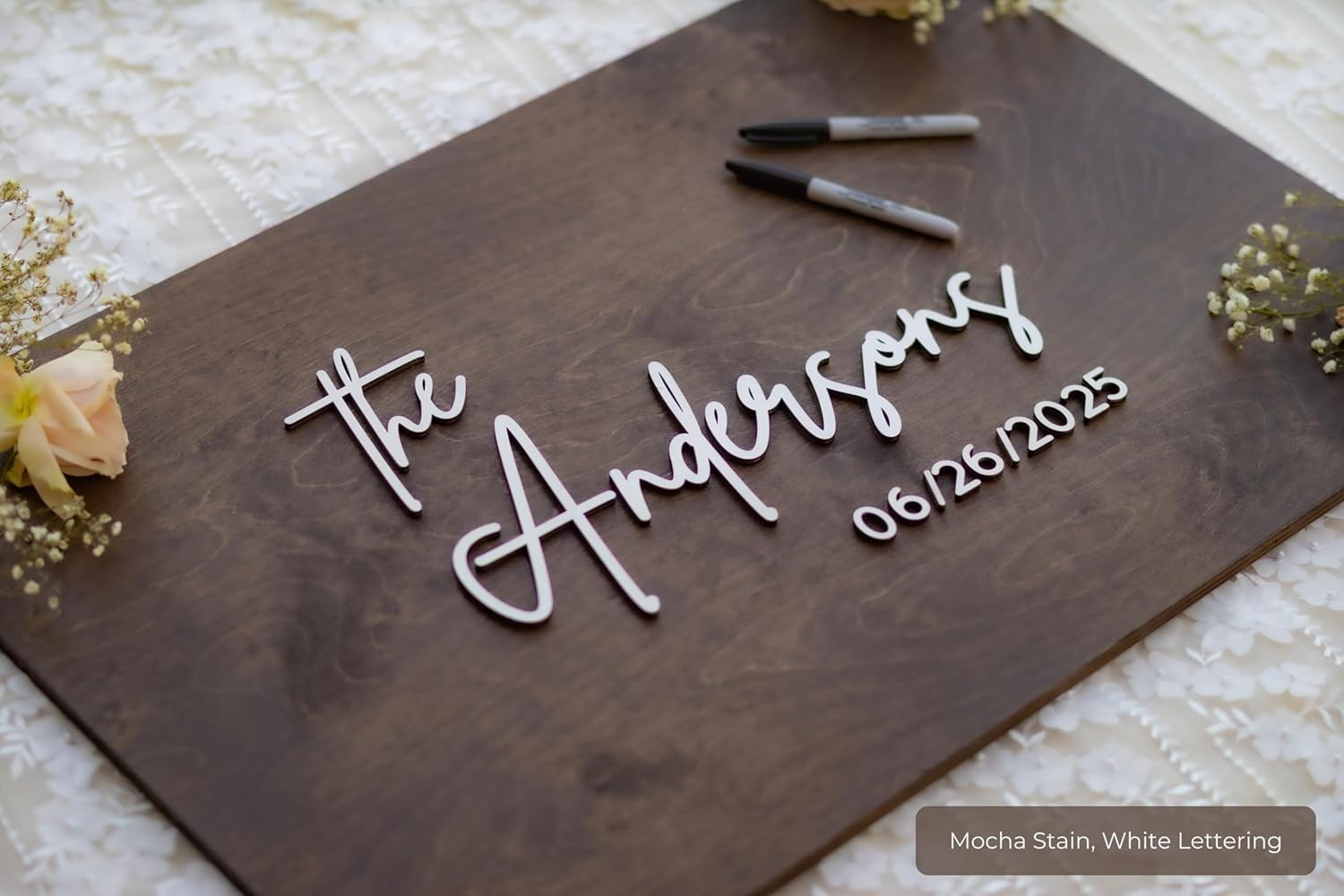 • Personalized Elegance: Create a truly unique wedding guestbook alternative with your names, wedding date, or a meaningful message in 3D onto high-quality 1/2" wooden sign.