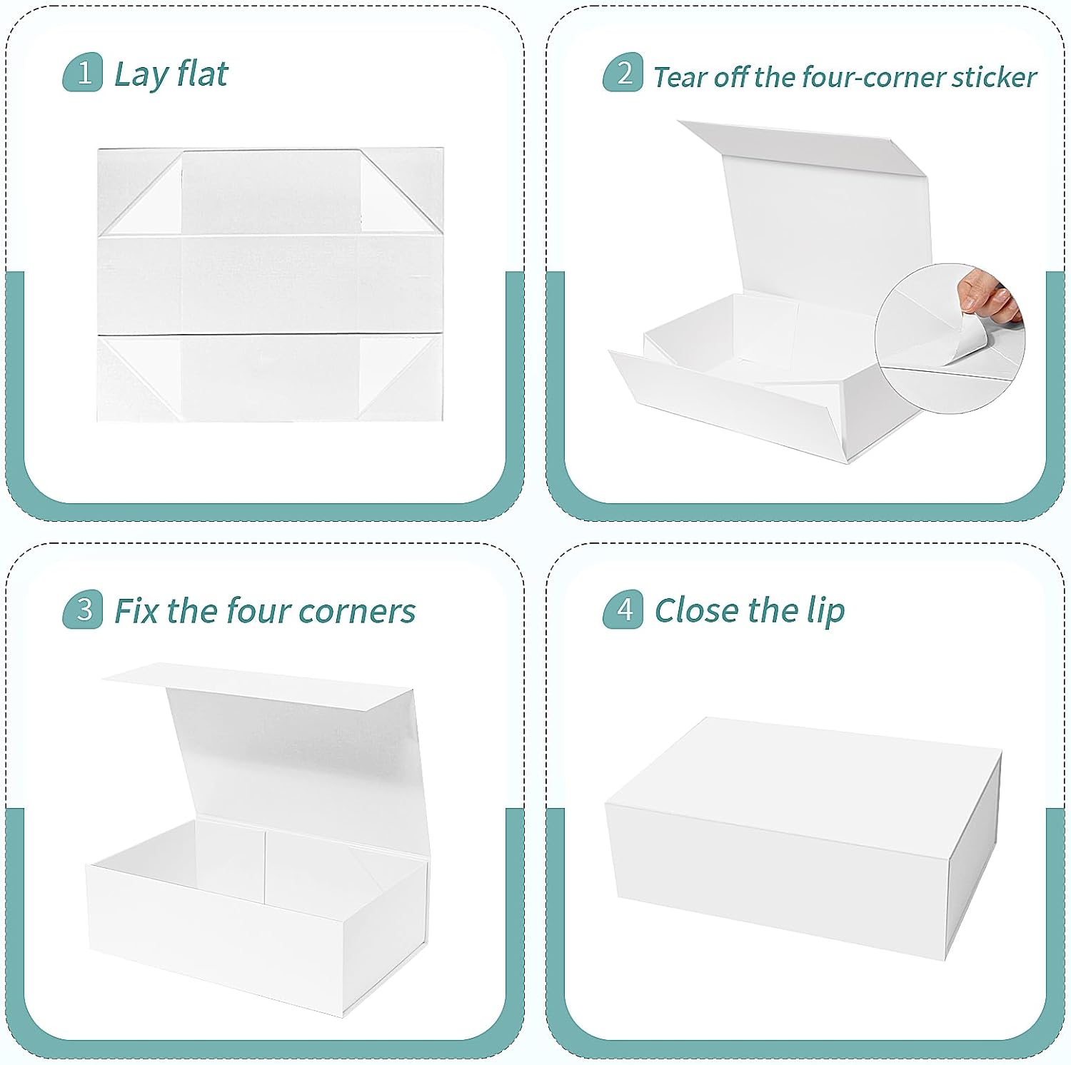 • EASY TO ASSEMBLE: For easy transportation,the gift box is designed to be folded. Unpack the package,tear off the white triangle sticker,paste and assemble the box.