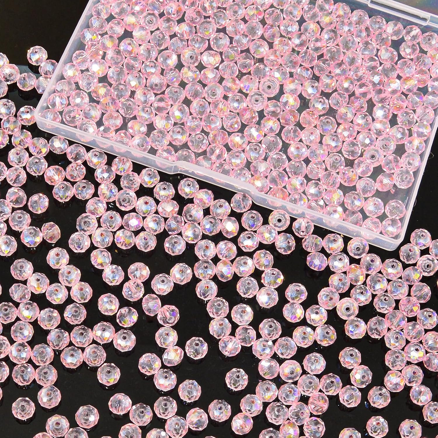 460Pcs 8mm Crystal Glass Beads for Jewelry Making Beads for Bracelets Necklace Pendants Making Supplies(Pink)