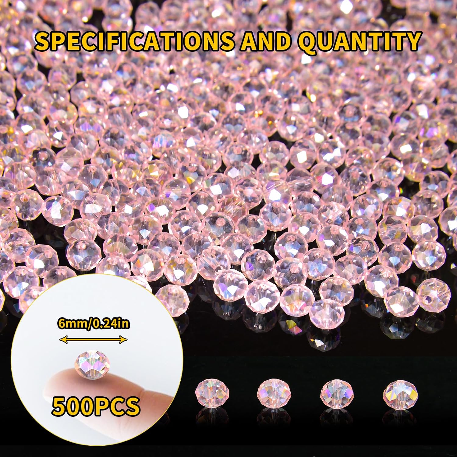 500Pcs 6mm Crystal Glass Beads for Jewelry Making Beads for Bracelets Necklace Pendants Making Supplies(Pink)