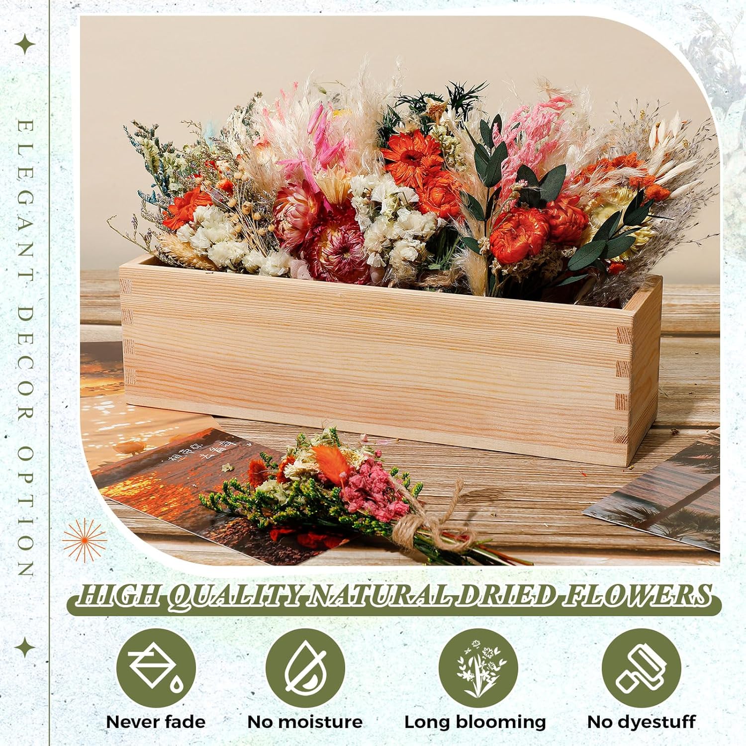 • Maintenance Tips: as these are natural dry flowers designed by hand, slight differences in size and color from the displayed pictures are normal, but rest assured, their overall aesthetic appeal remains constant;Reminder: due to the natural characteristics of dry flower, transportation may cause slight breakage; After receiving, please gently open the petals and place the product in a damp environment (such as a bathroom) for 10 minutes to reduce dryness and avoid easy breakage caused by dryness