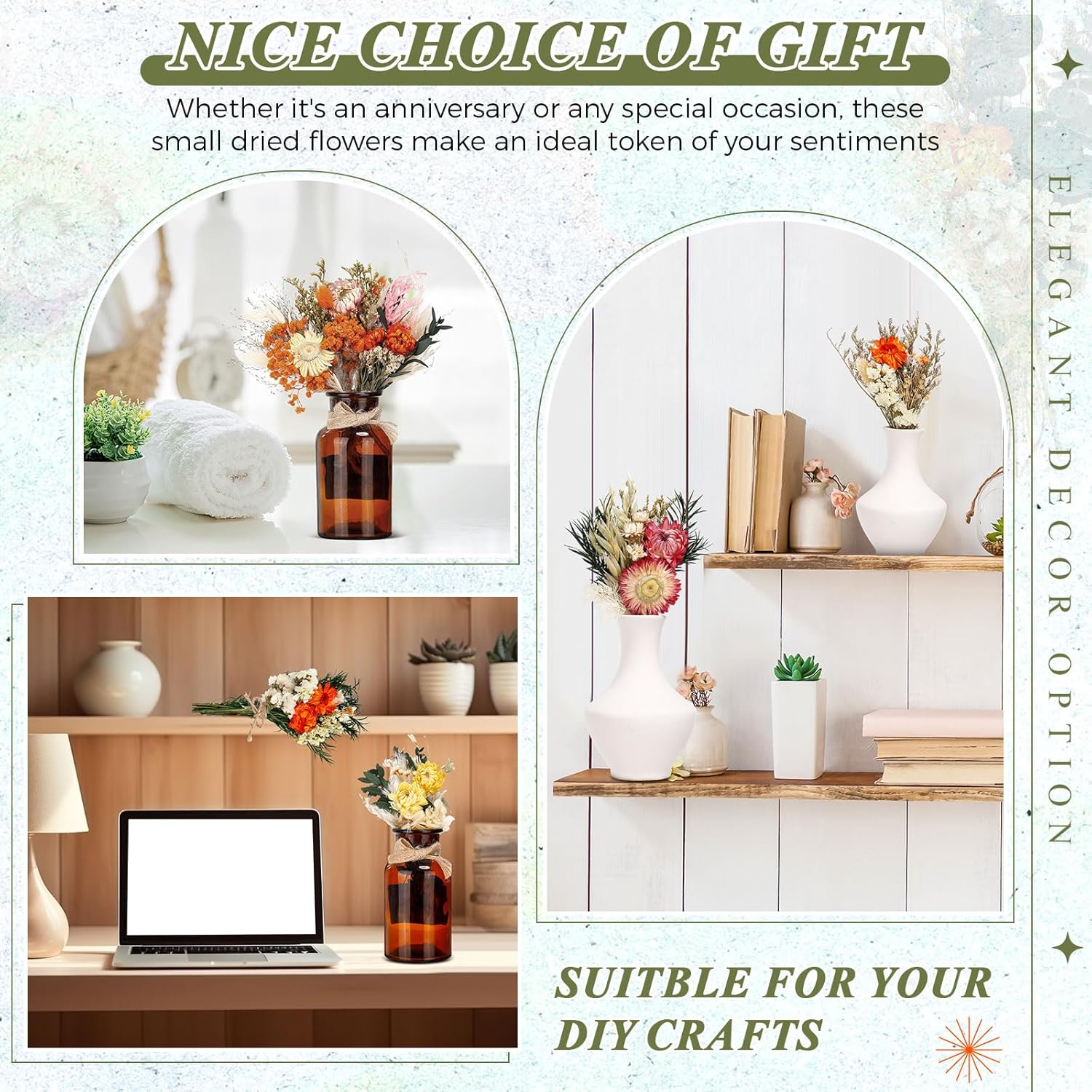 • Ideal Gifting Option: send heartfelt words with our tiny dried flower bundles as your gift; Whether it's a birthday, anniversary, or other holiday, these flower bundles make an ideal choice for expressing your sentiments; The act of gifting these beautiful bouquets is sure to bring you and the recipient closer