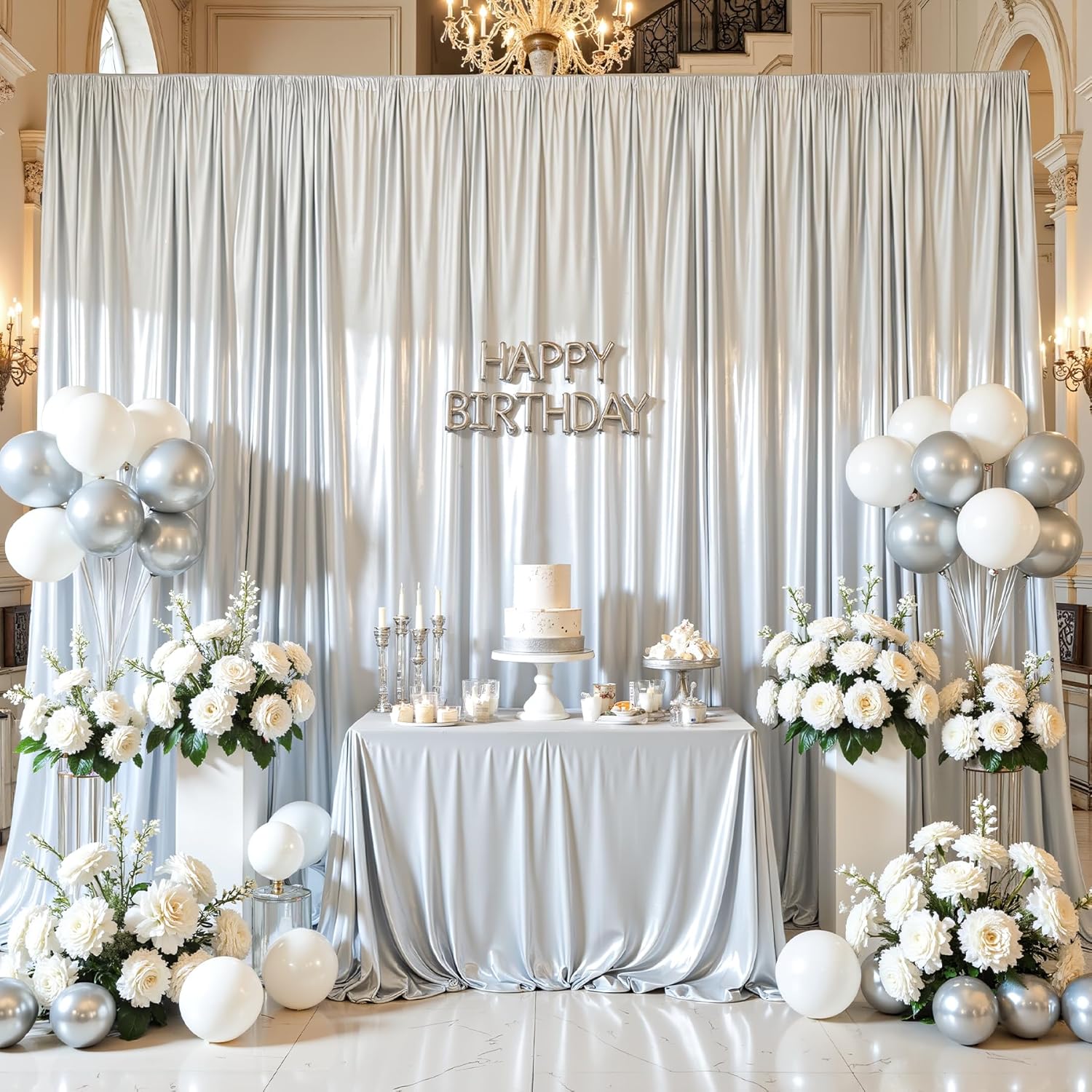 • Silver Backdrop Panel Package Included & Easy to Install:The package included 2 Panels 5x10ft backdrop curtain,which can be arranged side by side to create a 10x10ft backdrop or used separately.Install way: Insert a rod or hang it on walls, ceilings, or temporary frames.