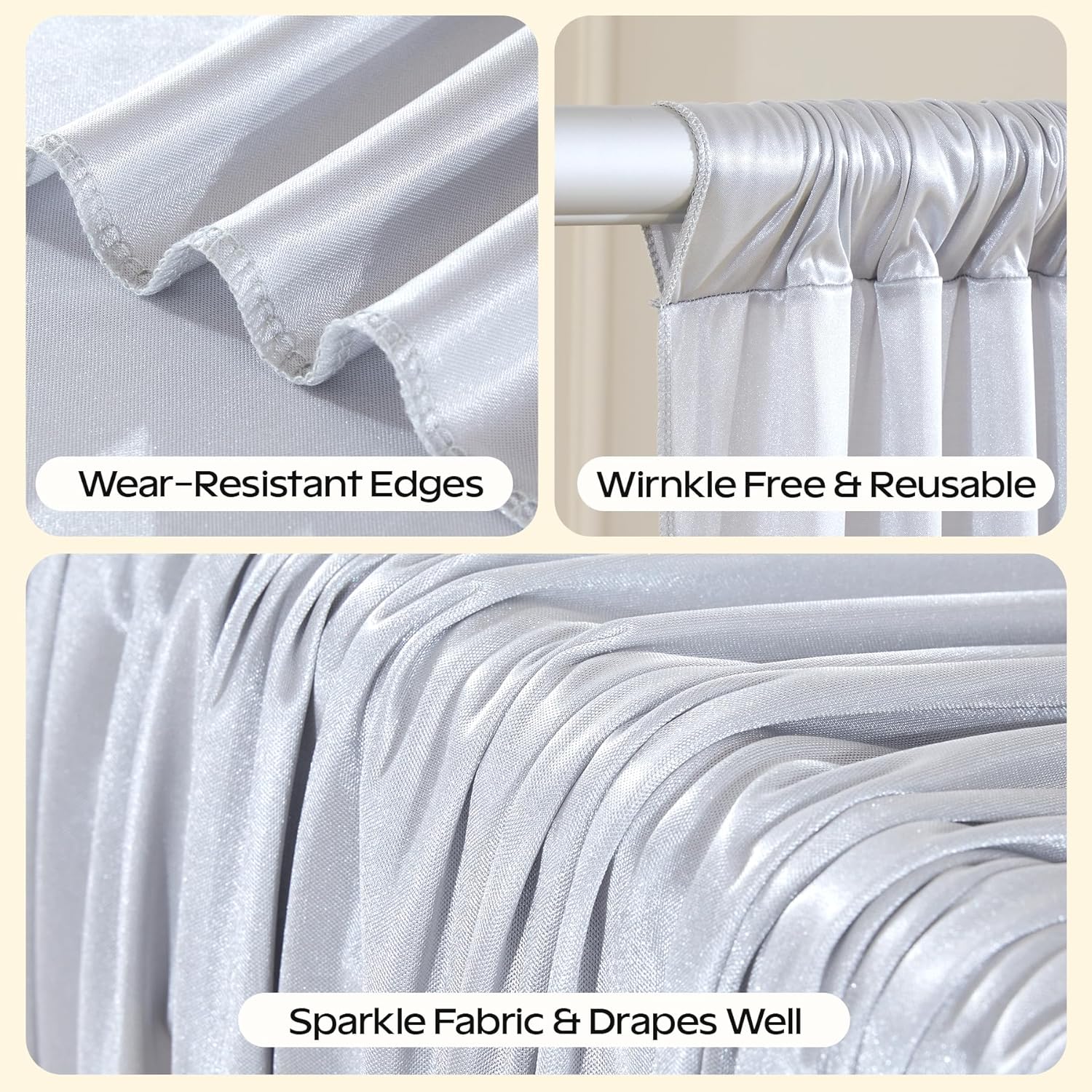 • Shimmer Silver Backdrop Anti-wrinkle:This wedding glitter backdrop curtain made of luminous fabric,it is thick and well-made,the fabric is very smooth and drapes fantastically.it could added some elegance to a event. The material can keeping the natural droop when falls on the floor to perfect for various theme events.