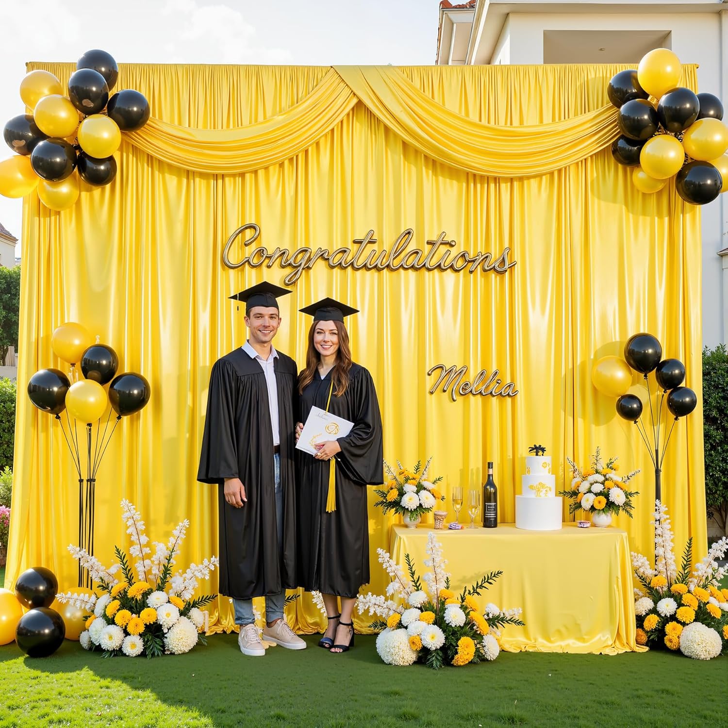 • Gold Drapes for Backdrop Wide Compatibility:The shimmer gold backdrop is suitable for weddings,baby showers,birthday parties,Photography,anniversaries,graduations,home decor,also can be used as a live video background, selfie wall, or creative curtains.The gold wedding backdrop curtains match with balloons, banners,photo props,flower and other party decorations will make the scene more beautiful and elegant.