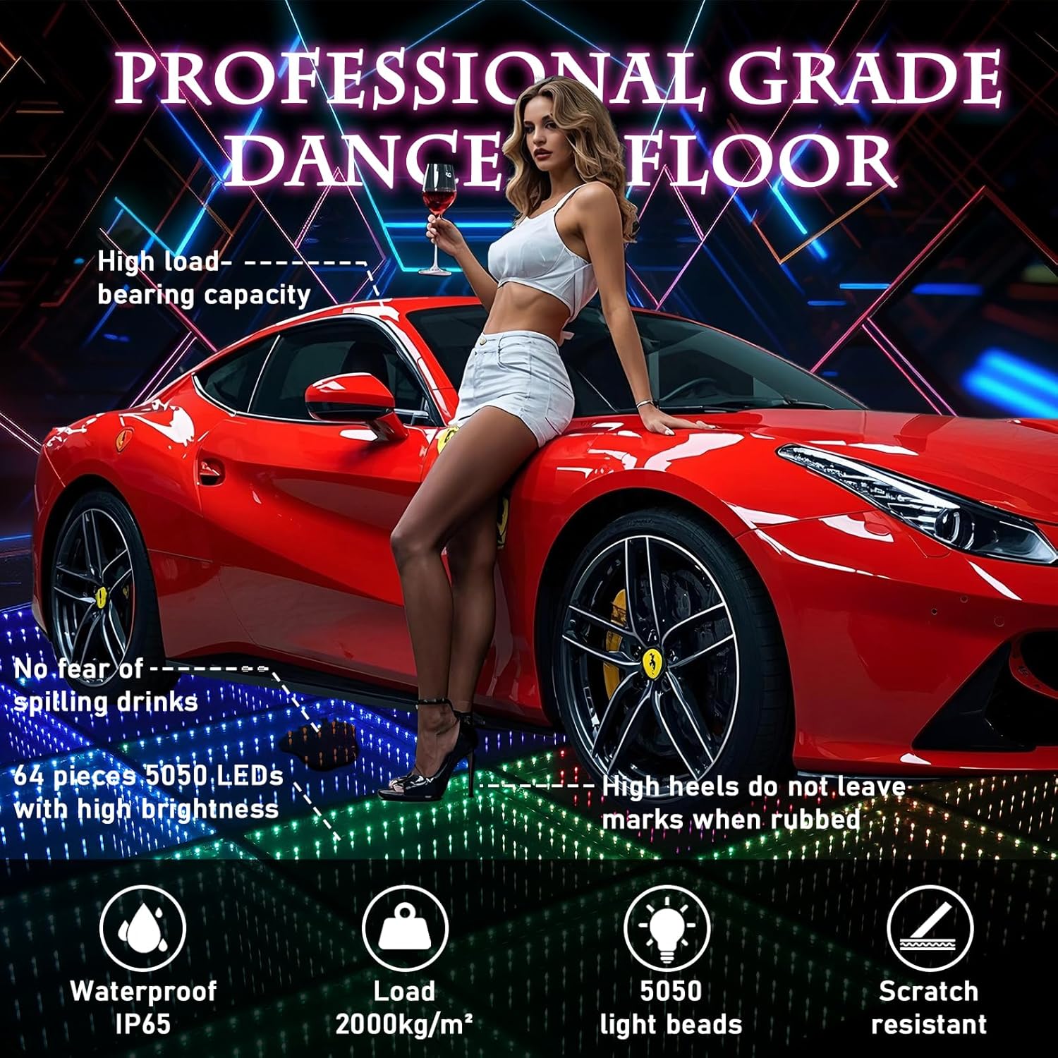 • ➤【Commercial-Grade Durability & Safety】Built for heavy-duty use with 10mm tempered glass (scratch-resistant, waterproof IP65) and anti-slip surface, supporting 500kg/㎡ load capacity. The 50,000-hour LED lifespan ensures long-term reliability for clubs, stages, and outdoor events.