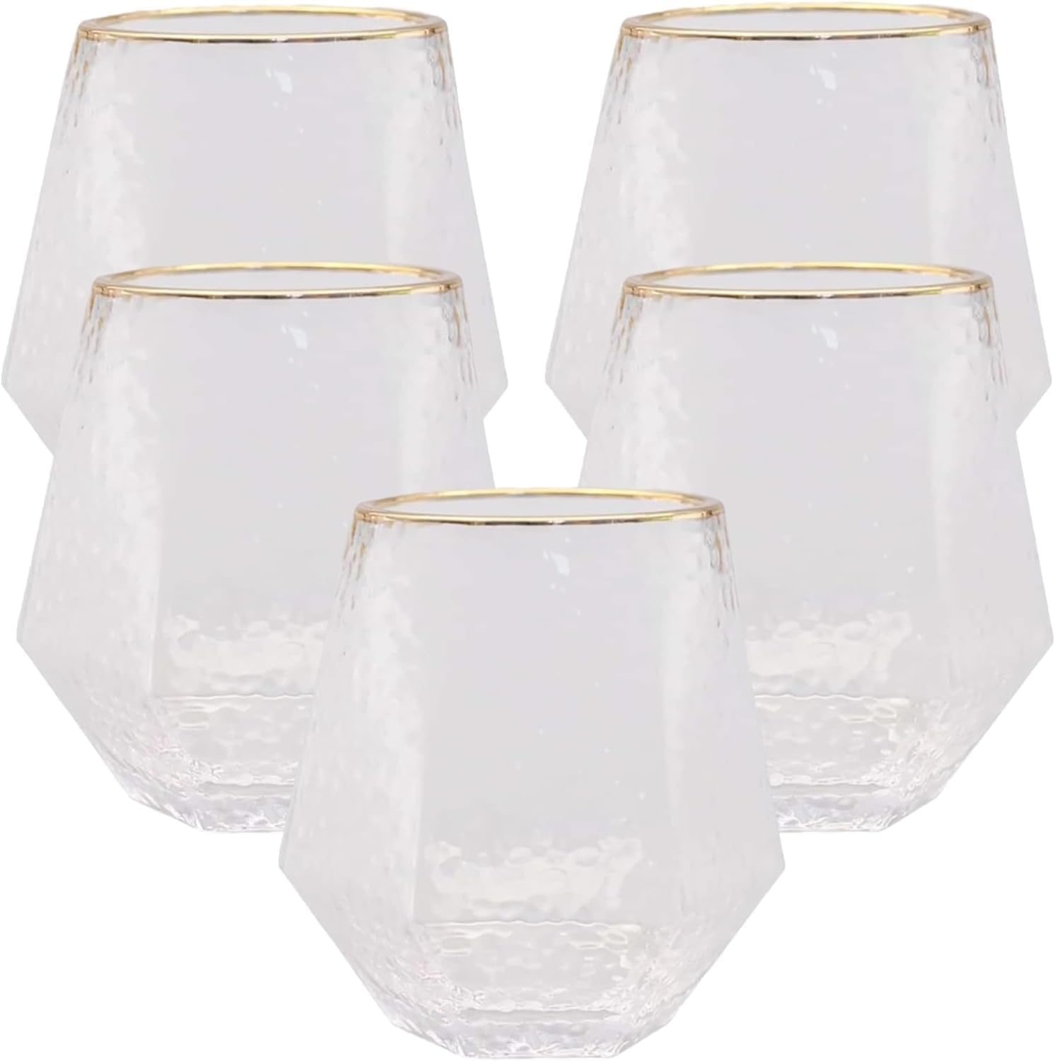 • Unique Hammered Clear Design – A fresh take on plastic drinkware with a stunning hammered texture and crystal-clear finish that mimics upscale glassware. 40 Diamond-Shaped Disposable Glasses: Stand out with our unique diamond-shaped, clear plastic glasses. Perfect for wine, champagne, whiskey, and cocktails, these elegant 12 oz stemless cups add a stylish touch to any event, ensuring your guests enjoy both beauty and functionality.