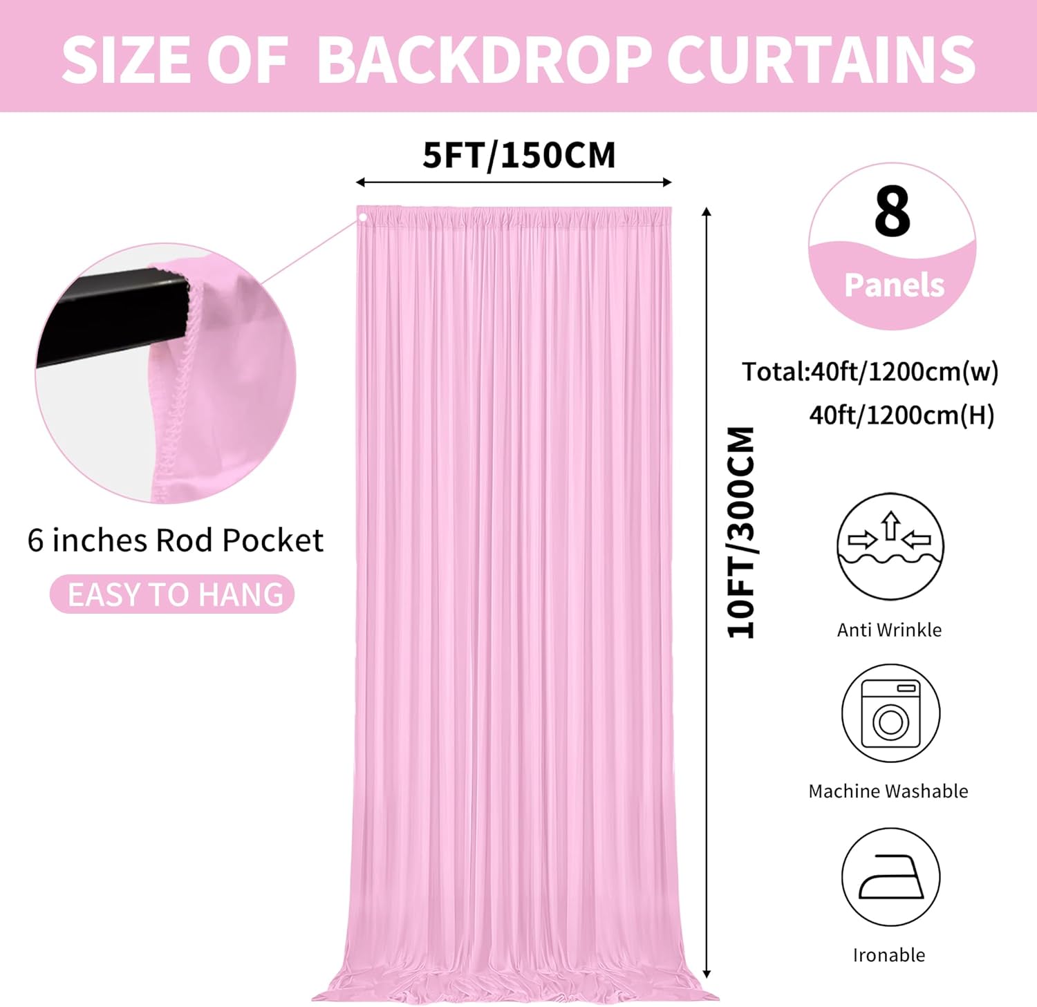 40x10ft Backdrop Curtains for Parties, 8 Panels 5x10ft Curtains Photography Drapes Rod Pocket Curtain Backdrop for Birthday Wedding Baby Shower Home Decor