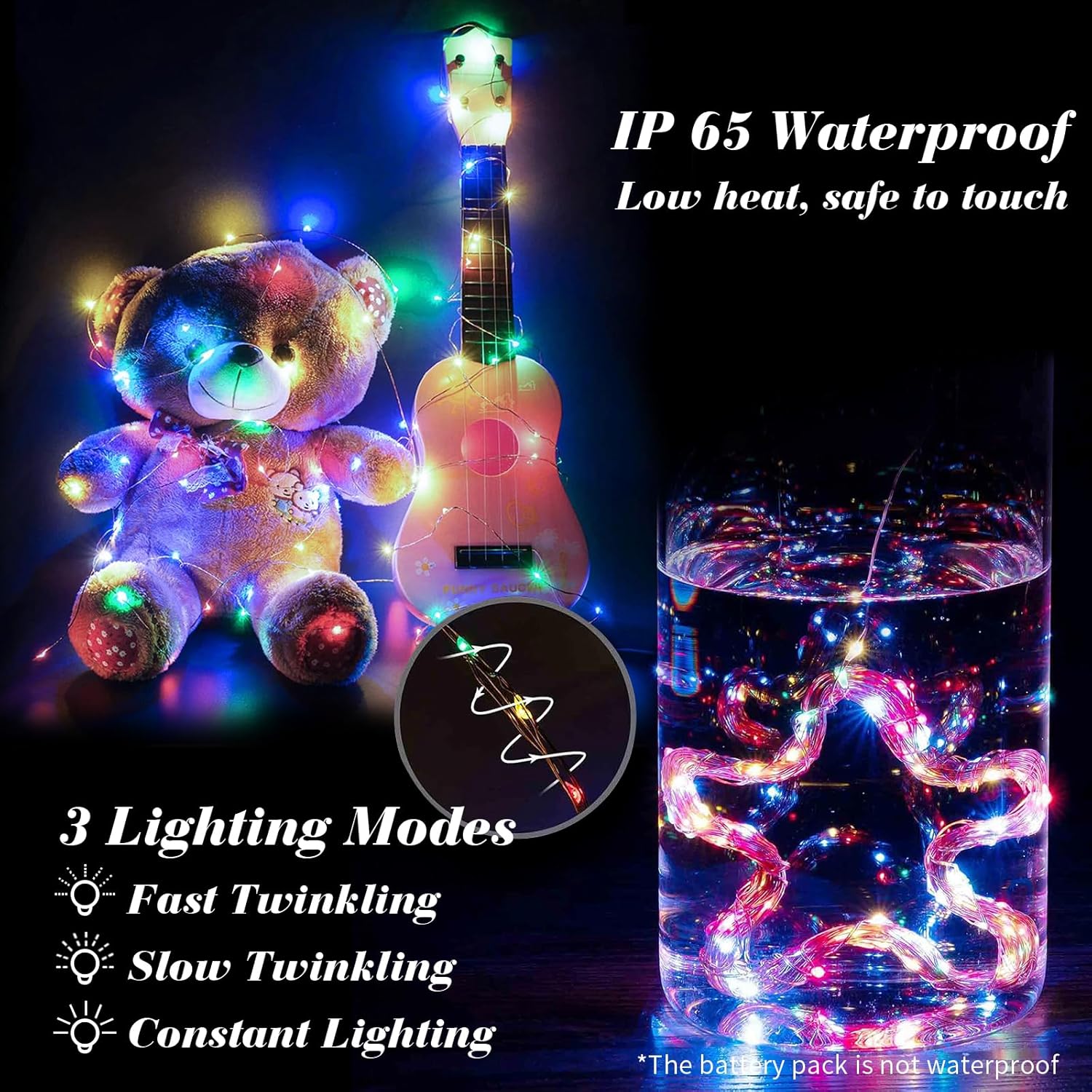 • 3 LIGHTING MODES AND WAIDELY APPLICATION: The fairy lights are super convenient enables to switch 32 flashing modes, Fast Twinkling, Slow Twinkling and Constant Lighting; This versatile battery operated lights can be used for Christmas decoration, holiday, Halloween parties, Valentine's Day, wedding, bedroom and centerpiece table decorations. Giving you different decorative effect and romantic atmosphere