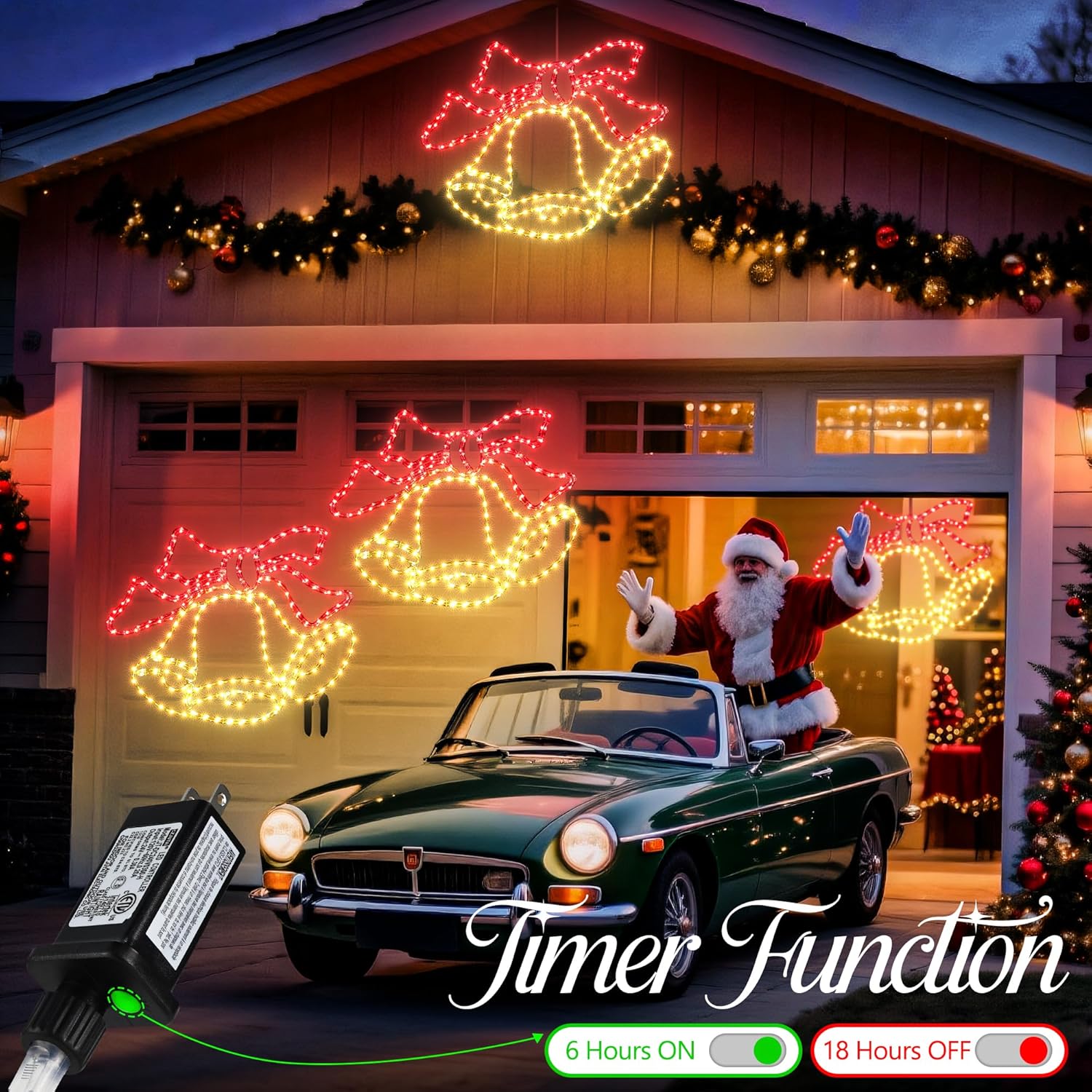 • TIMER FUNCTION:Jyoiat Christmas Large Bells lights feature a built-in timer that allows you to set Christmas lights to stay on for 6 hours and off for 18 hours. Free your hands and save energy.