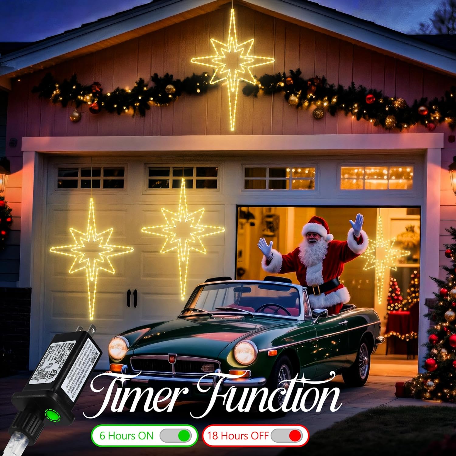 • TIMER FUNCTION:Jyoiat Christmas large bethlehem star lights feature a built-in timer that allows you to set Christmas lights to stay on for 6 hours and off for 18 hours. Free your hands and save energy.