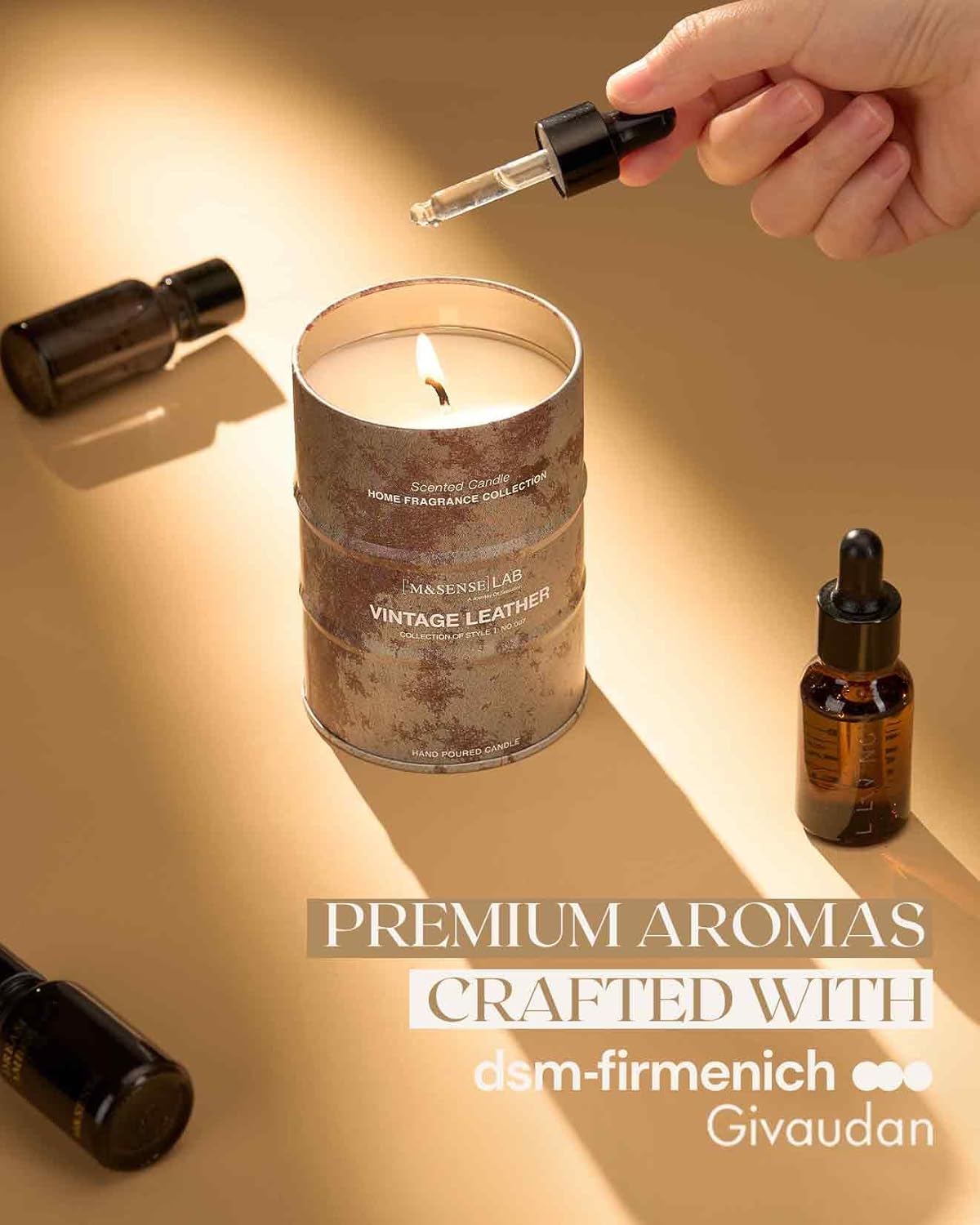 M&SENSE Vintage Leather Scented Candles Natural Non Toxic, Aromatherapy Candle for Stress Relief Meditation Relaxing, Housewarming Gifts for Women Men, 11.3oz 70 Hour Long Burning