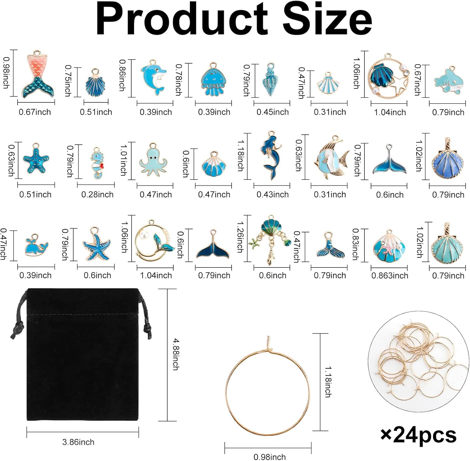 • Package Content: You will receive 24 pieces blue ocean themed charms and 1 storage bag. 24 wine glass charms of different patterns are combined with some classic elements of ocean, such as shells, starfish, dolphins, jellyfish, seahorses, mermaids and so on. These cute wine glass tags are sure to bring more joy to your party time
