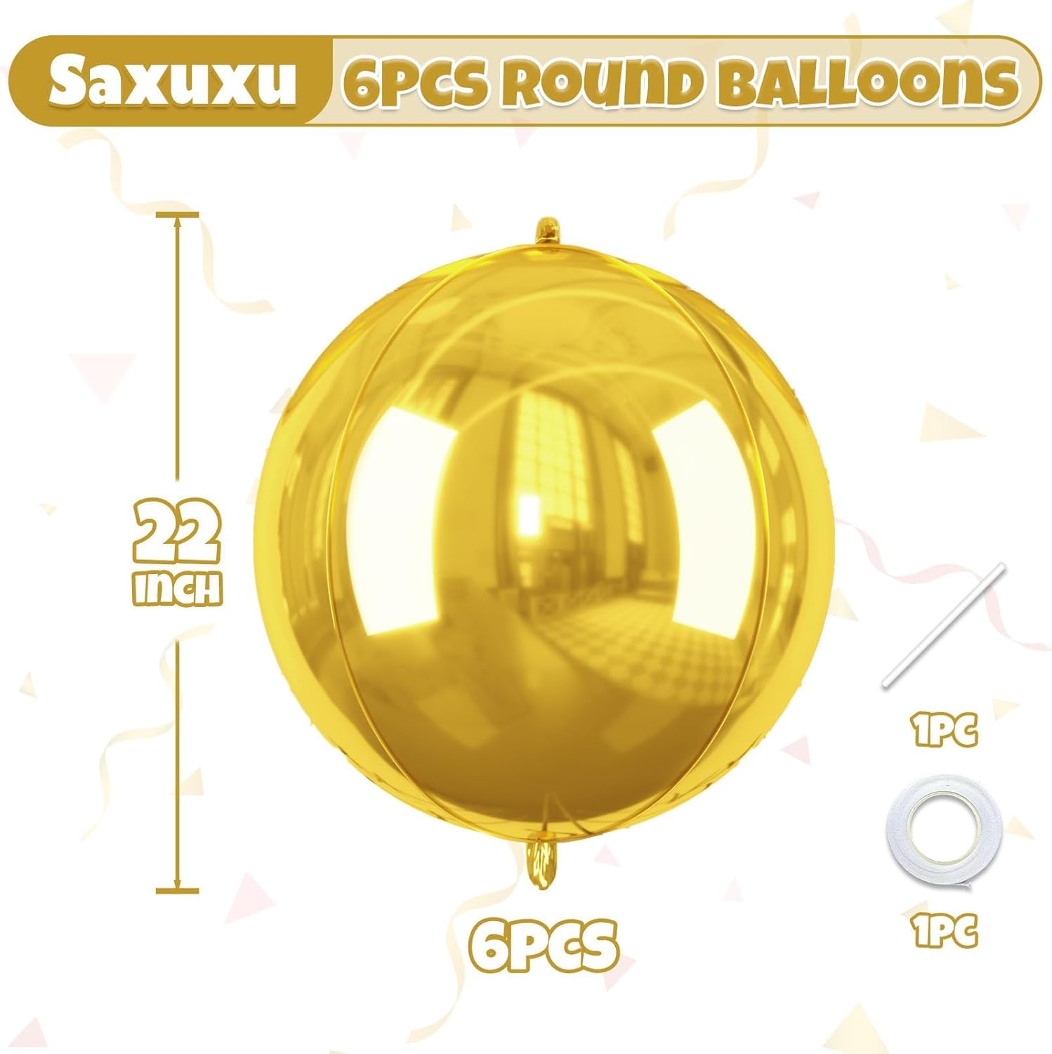 Gold Giant 4D Foil Balloons, Saxuxu 6Pcs Large Metallic Gold Round Balloons, 22 Inch Big Round Foil Balloon for Gold Birthday Party Baby Shower Wedding Decorations