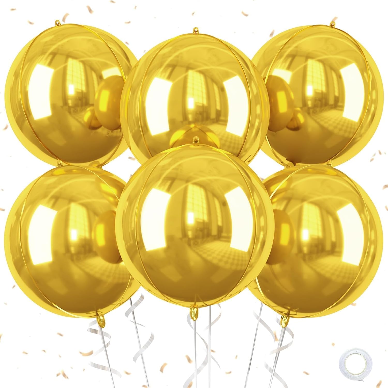 • 【PACKAGE CONTAIN】 This package includes 6 pcs 22-inch gold round 4D foil balloons, 1 pc straw and 1 pc ribbon. These large, eye-catching balloons are perfect for elevating your party decor with a bold and stylish touch.