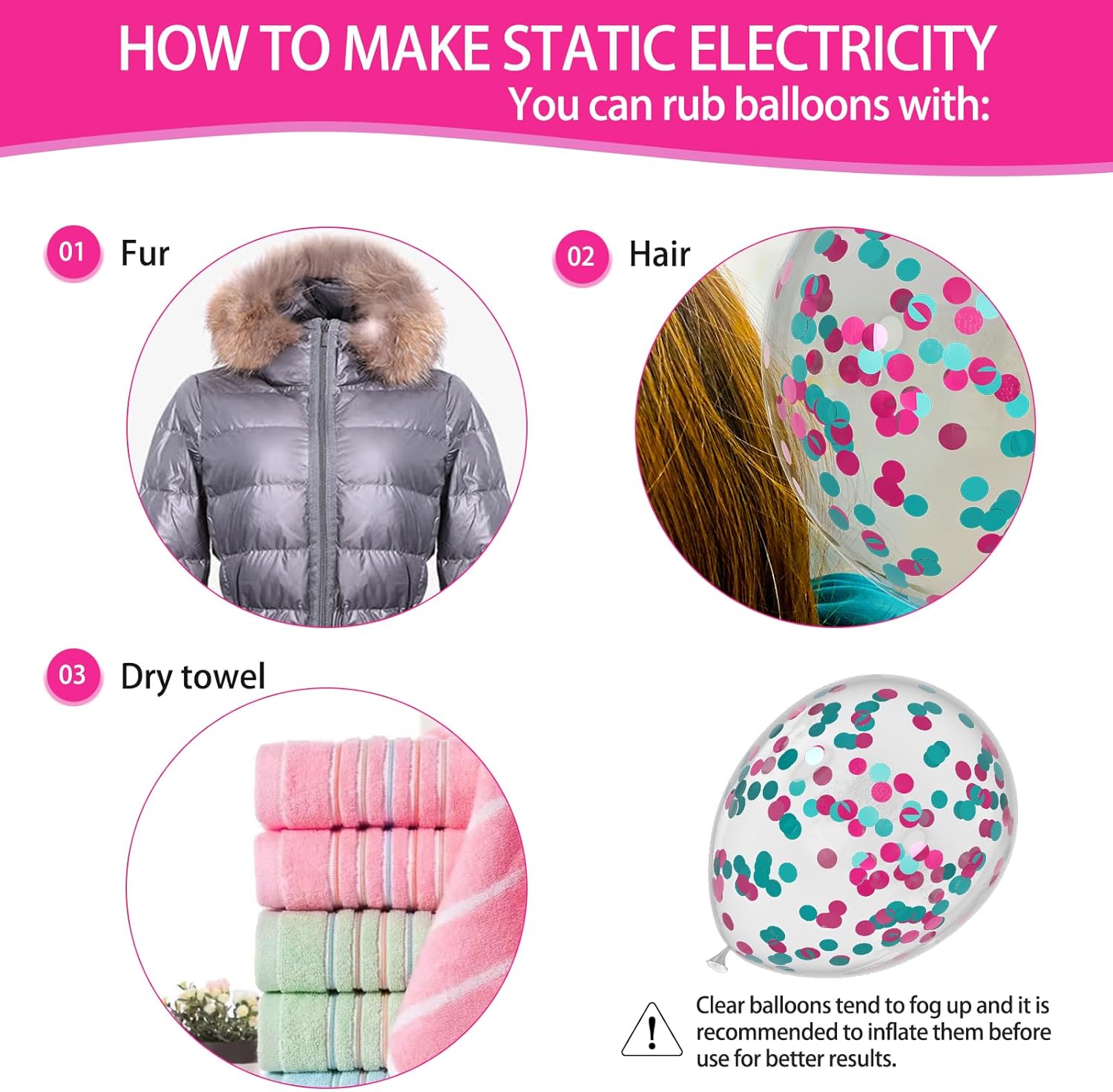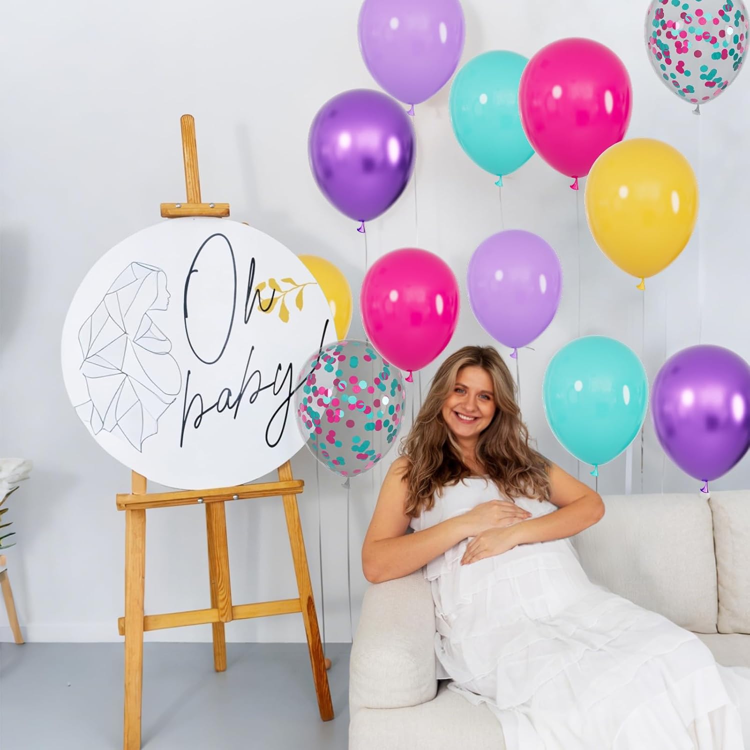• Simple balloon pack: Contains 68 pieces of 12-inch latex balloons, including 8 metallic purple balloons, 8 hot pink teal mixed confetti balloons, 13 teal balloons, 13 purple balloons, 13 yellow latex balloons, and 13 hot pink balloons.