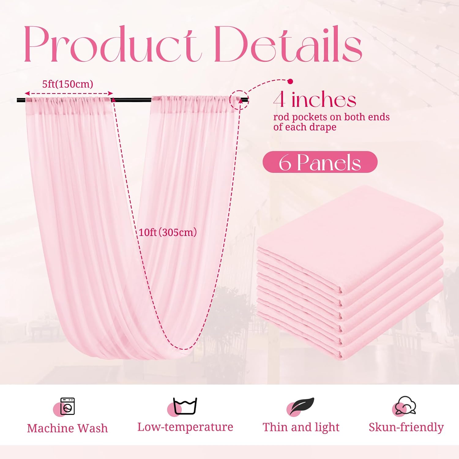 6 Panels Pink Ceiling Drapes for Wedding, 5ftx10ft Ceiling Drapes Cheesecloth Sheer Fabric Curtain Wedding Arch Draping Fabric Romantic Ceilings Decorations for Weddings Party Ceremony Stage