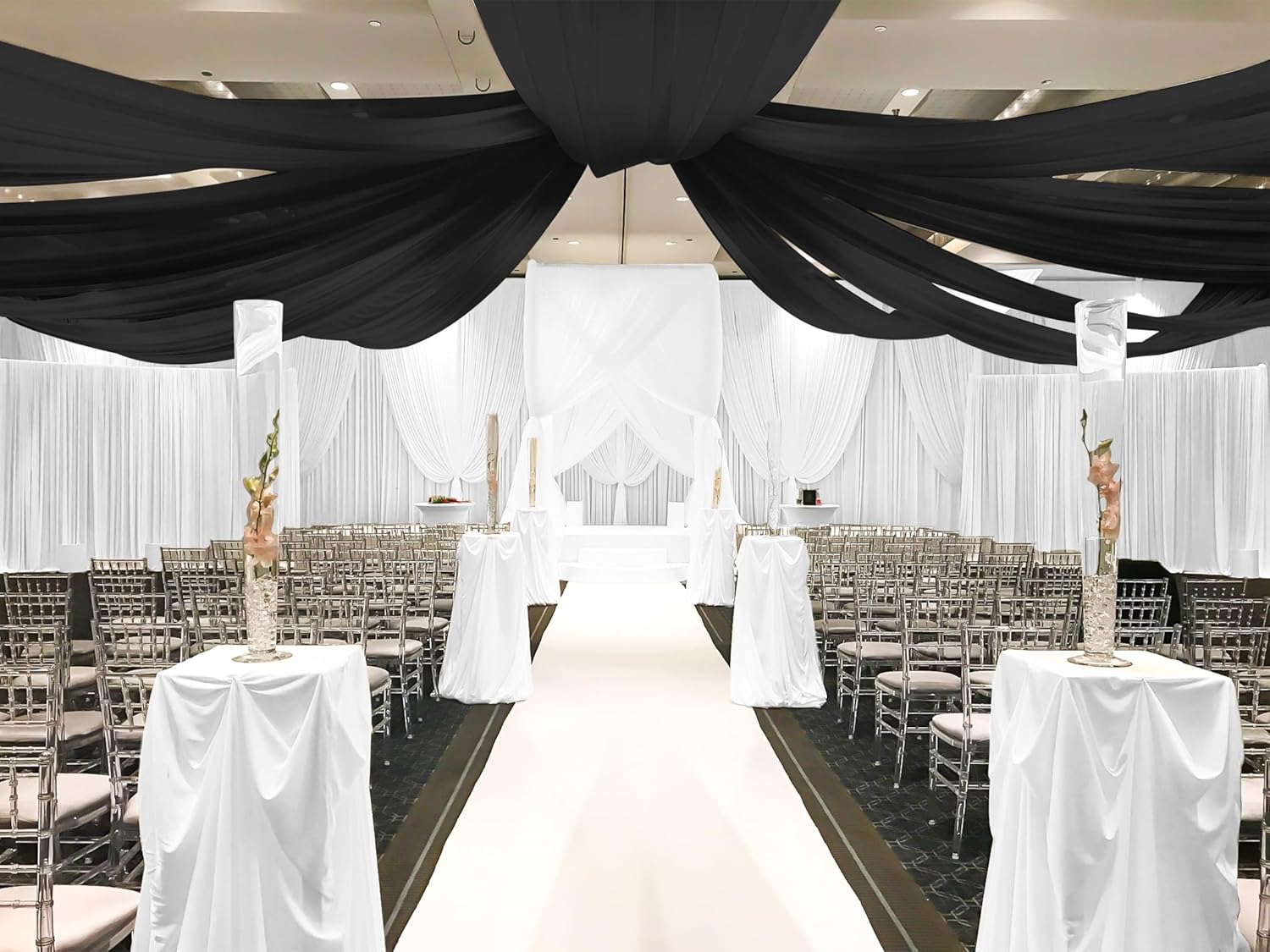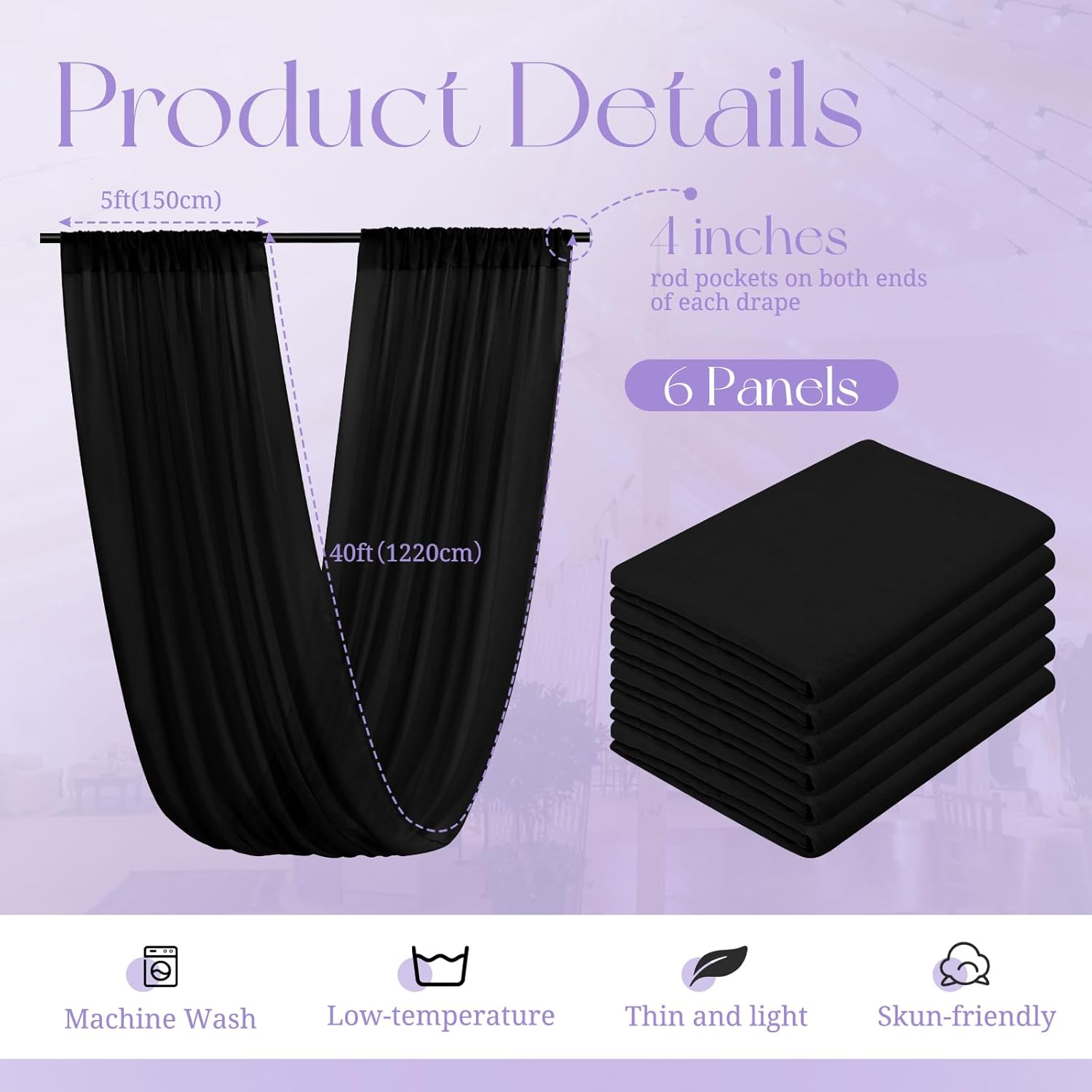 6 Panels Black Ceiling Drapes for Wedding, 5ftx40ft Ceiling Drapes Cheesecloth Sheer Fabric Curtain Wedding Arch Draping Fabric Romantic Ceilings Decorations for Weddings Party Ceremony Stage