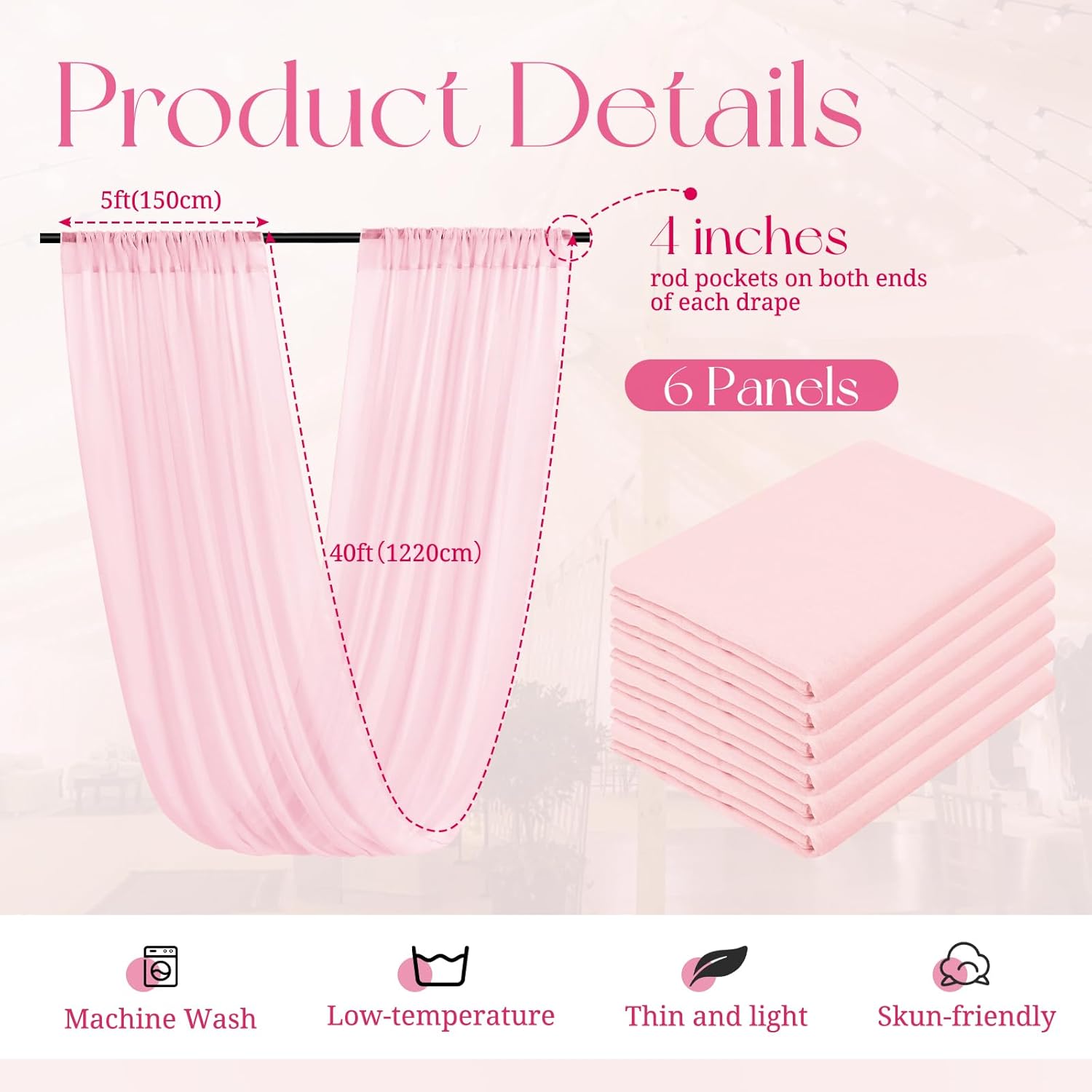 6 Panels Pink Ceiling Drapes for Wedding, 5ftx40ft Ceiling Drapes Cheesecloth Sheer Fabric Curtain Wedding Arch Draping Fabric Romantic Ceilings Decorations for Weddings Party Ceremony Stage