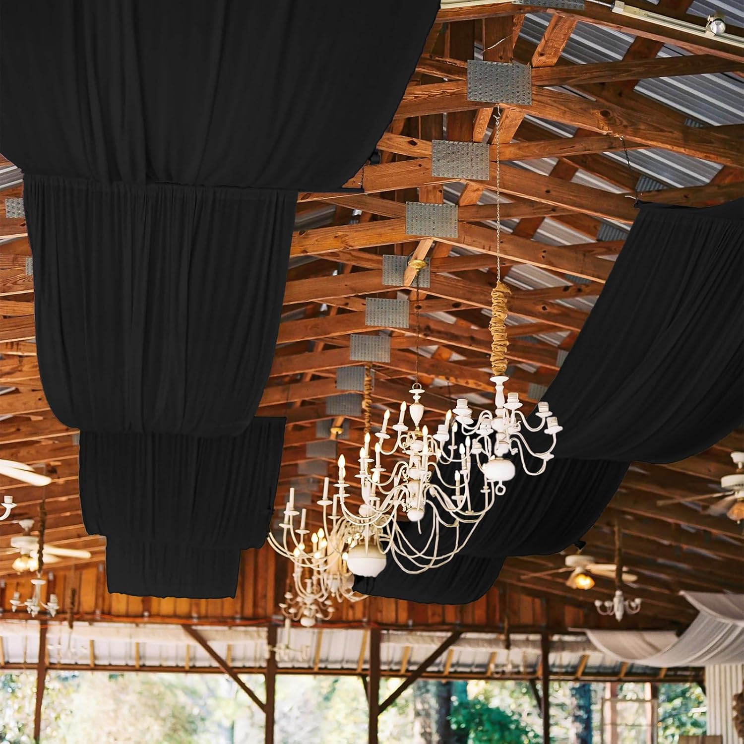 6 Panels Black Ceiling Drapes for Wedding, 5ftx10ft Ceiling Drapes Cheesecloth Sheer Fabric Curtain Wedding Arch Draping Fabric Romantic Ceilings Decorations for Weddings Party Ceremony Stage