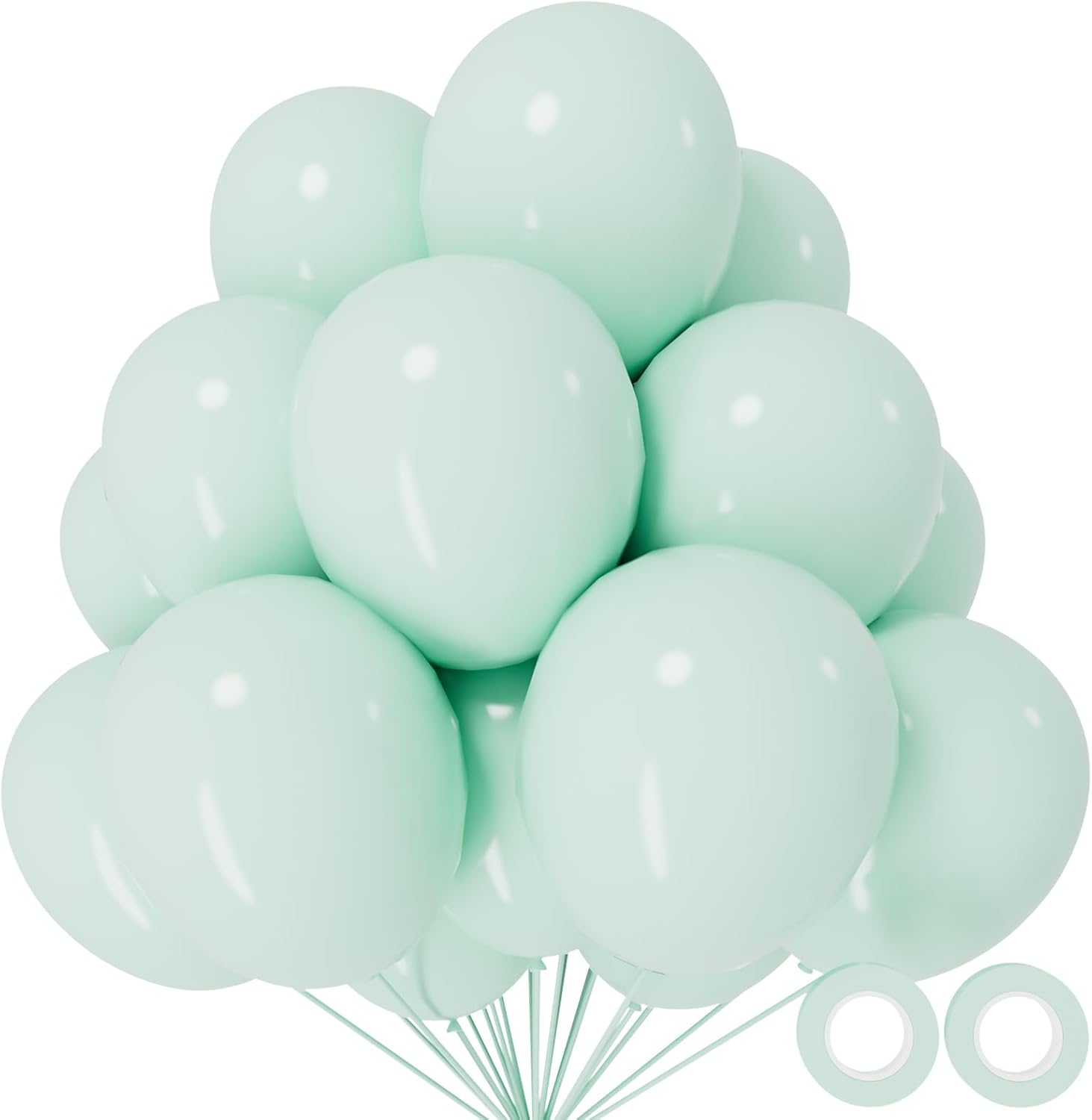 • Order pastel green ballons you will get 110pcs 12 inch pastel green baloons and 2 rolls of ribbons in random colors.