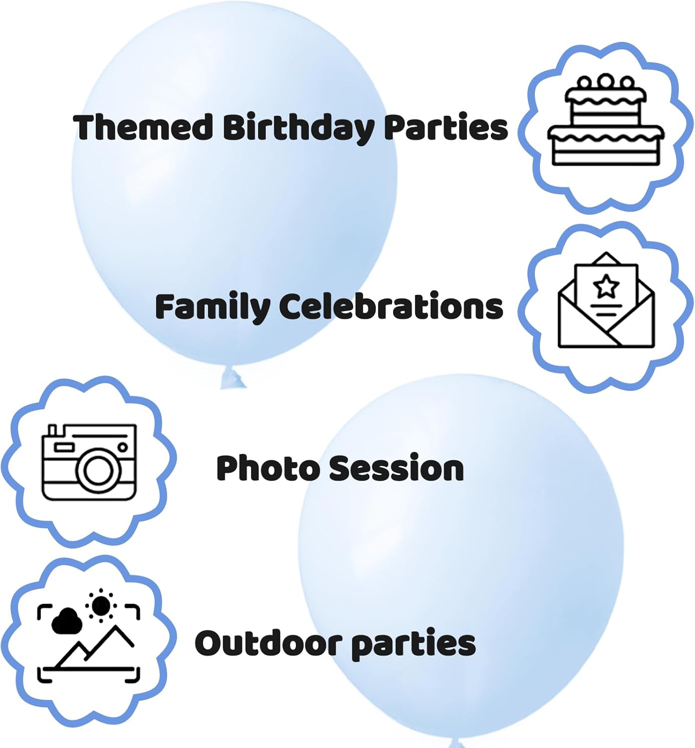 • The 12 inch pastel blue Latex Party Balloons included in the package can make your Party Decoration such as Birthday Party, Baby Shower,Wedding, Halloween or Christmas Party, etc. have enough pastel blue Balloons to decorate.