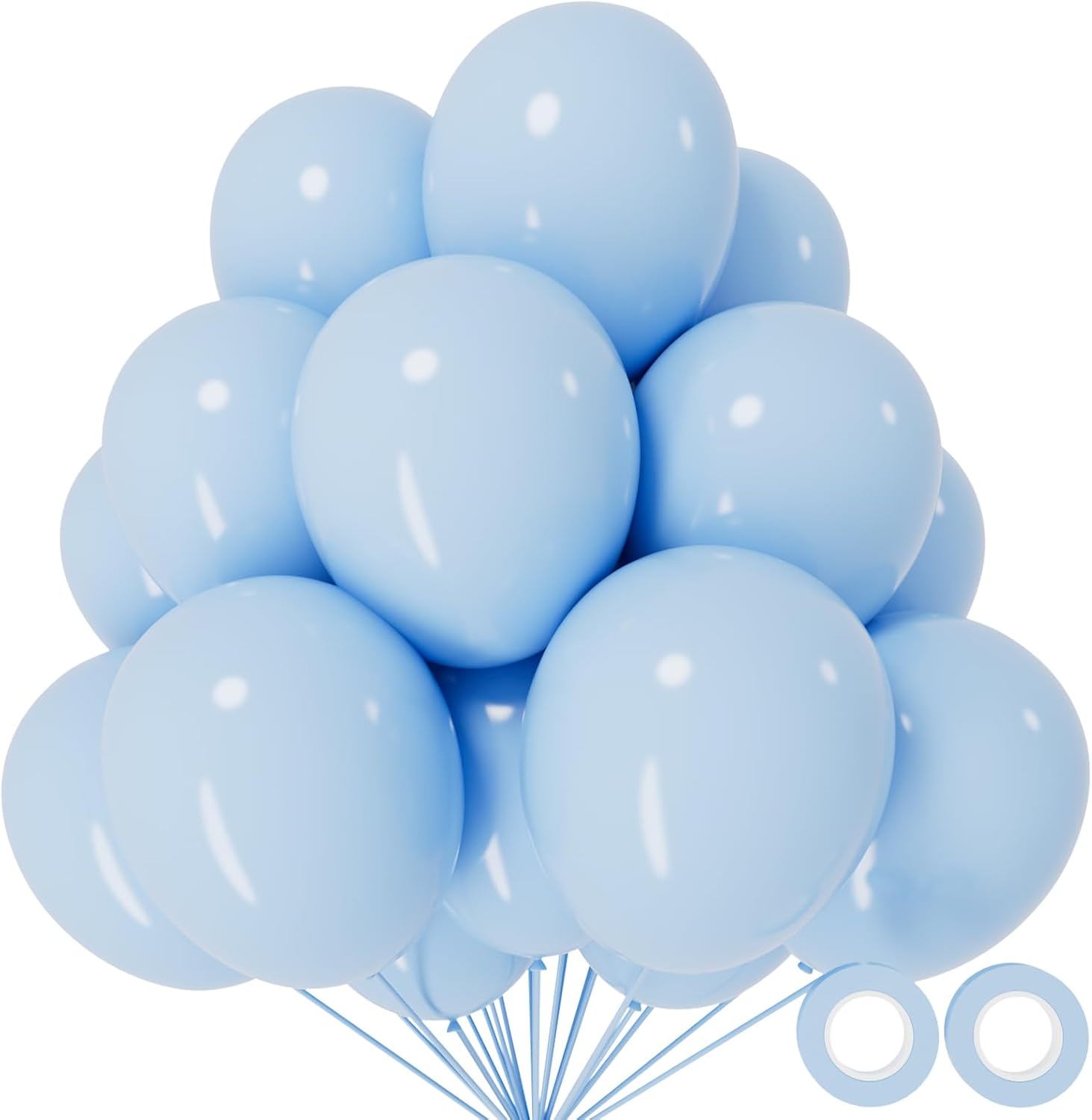 • Order pastel blue ballons you will get 110pcs 12 inch pastel blue baloons and 2 rolls of ribbons in random colors.