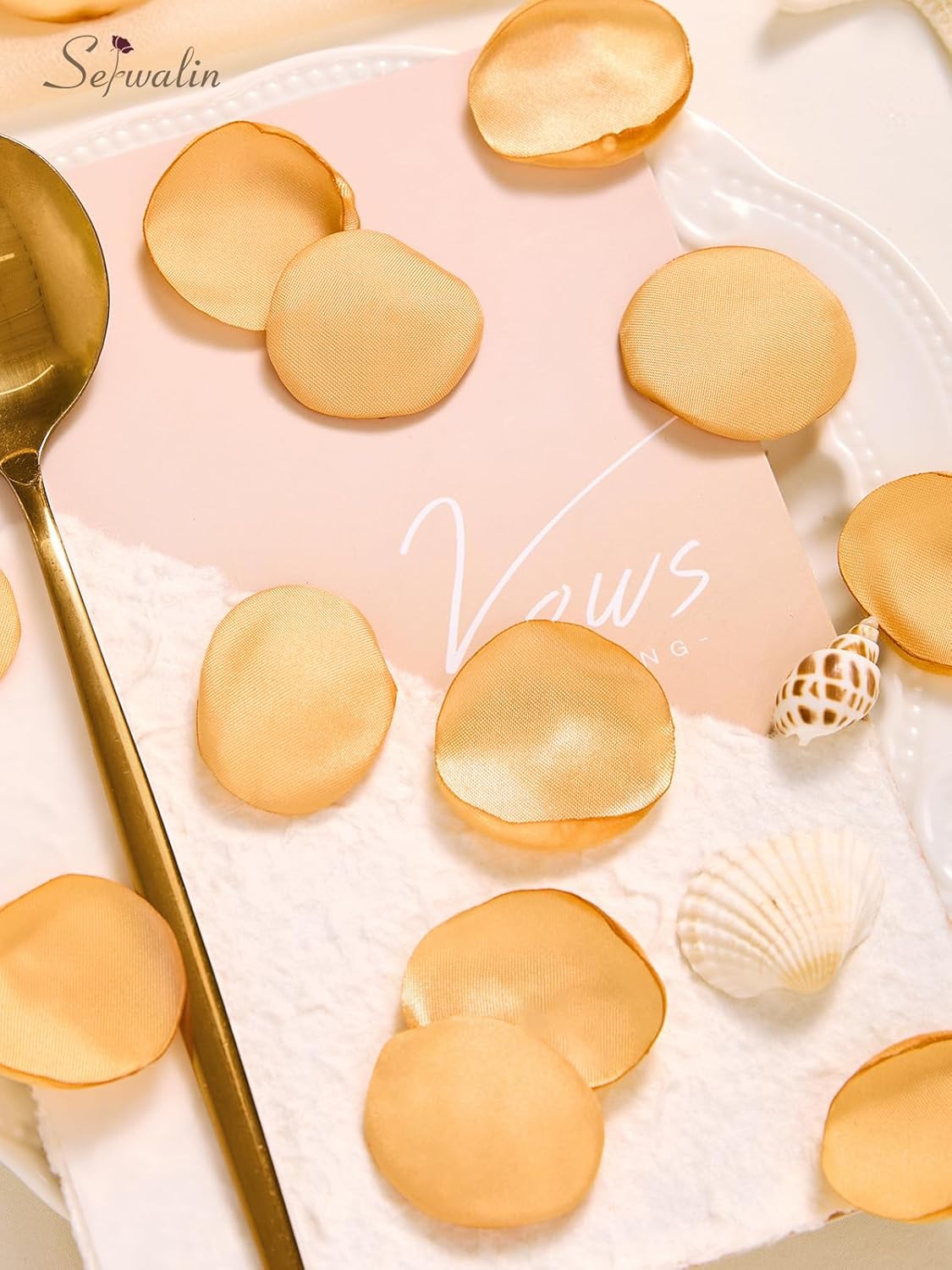 Serwalin 300Pcs Silk Rose Petals Fake Flower Petals Champagne Gold Artificial Rose Petals for Weddings Proposal Flower Girl Petals Aisle Flower Girl Basket Runner Bridal Shower Table Decor