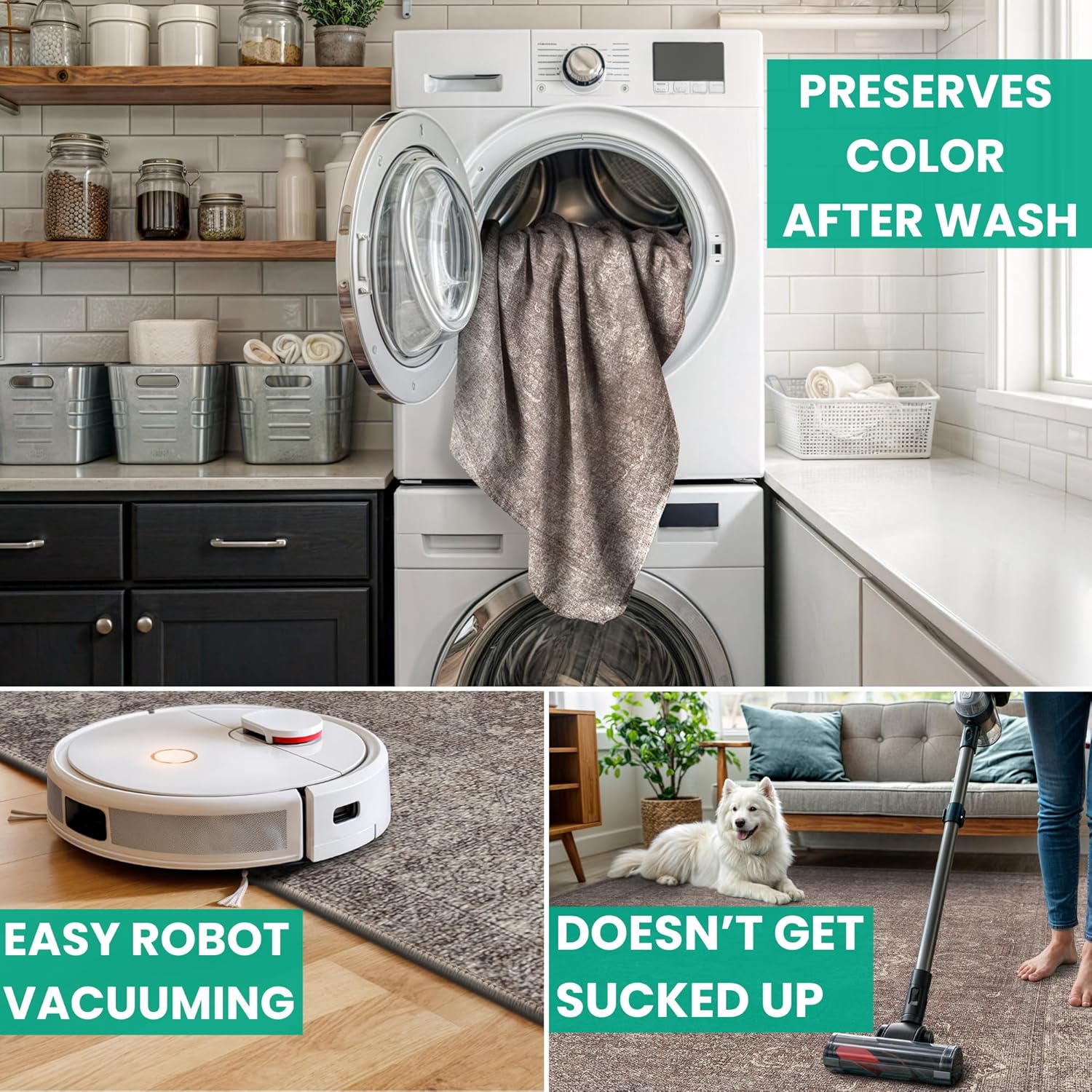 • MACHINE WASHABLE: Machine wash on delicate cycle (do not use bleach) at 85°F (30°C) and line dry or dry on air-only cycle without heat. Vacuum regularly and spot clean small stains. This easy to clean rug is perfect for families with kids and pets, and for high traffic areas.