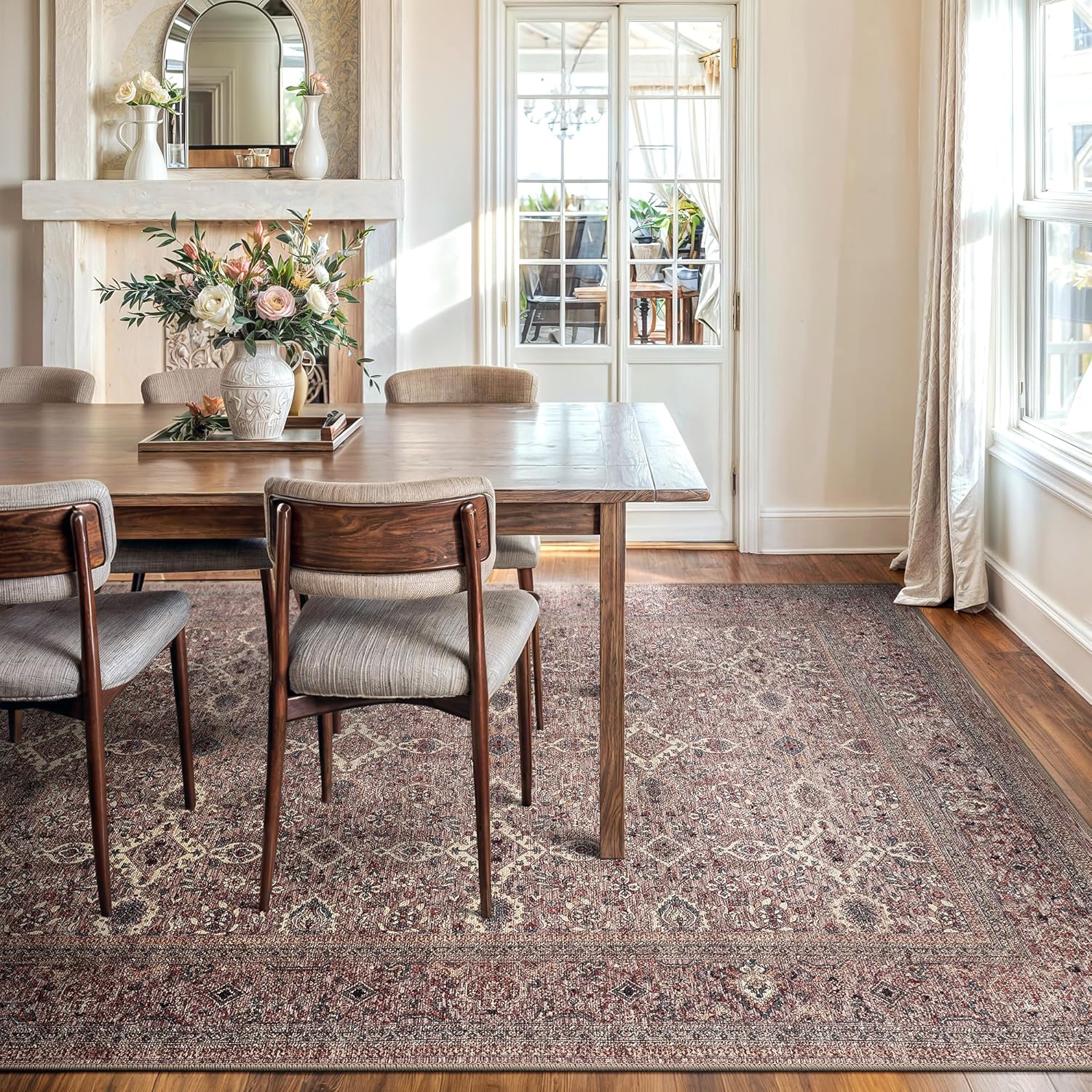 Bloom Rugs Washable Non-Slip 9' x 12' Rug - Beige Traditional Bordered Area Rug for Living Room, Bedroom, Dining Room, and Kitchen - Exact Size: 9' x 12'