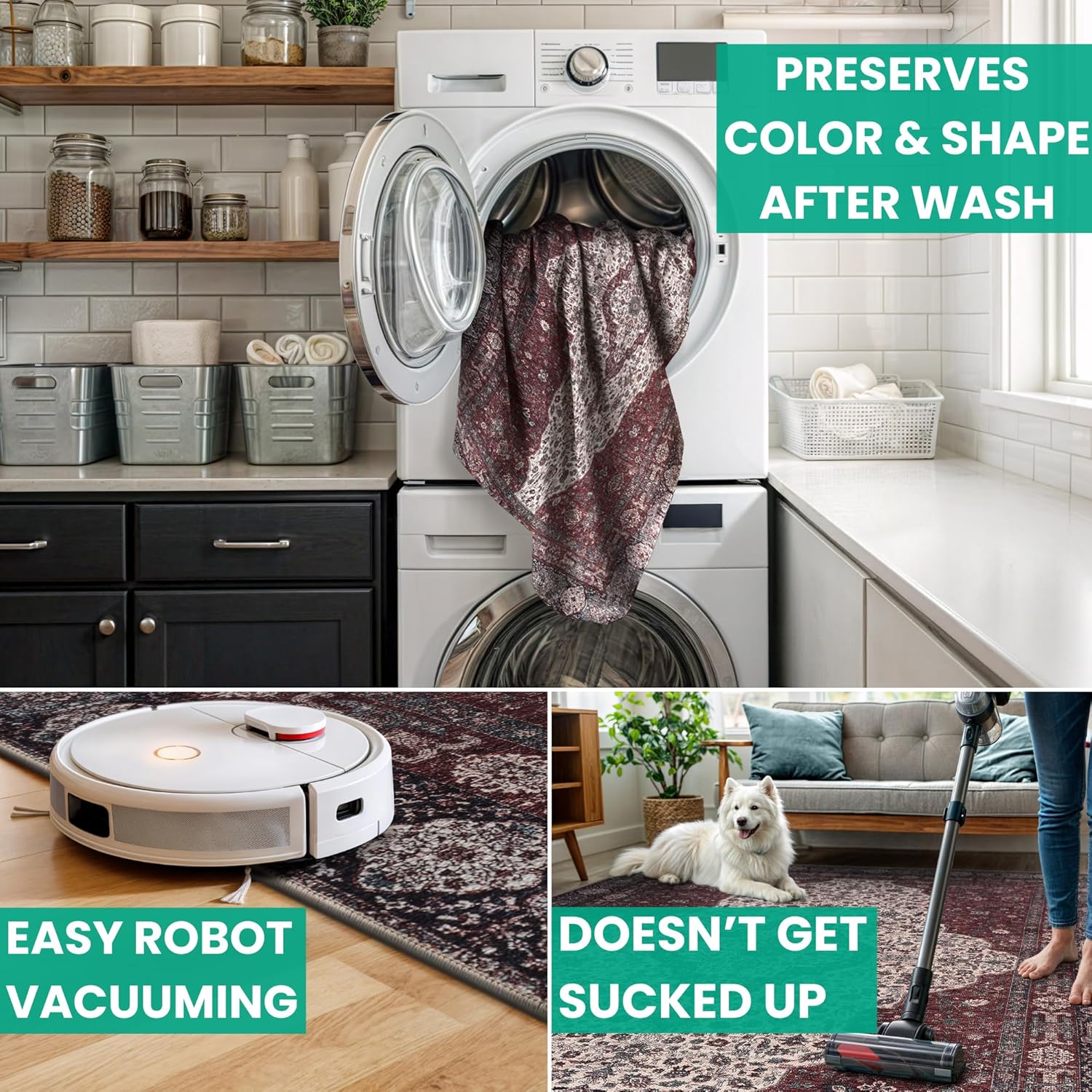 • MACHINE WASHABLE: Machine wash on delicate cycle (do not use bleach) at 85°F (30°C) and line dry or dry on air-only cycle without heat. Vacuum regularly and spot clean small stains. This easy to clean rug is perfect for families with kids and pets, and for high traffic areas.