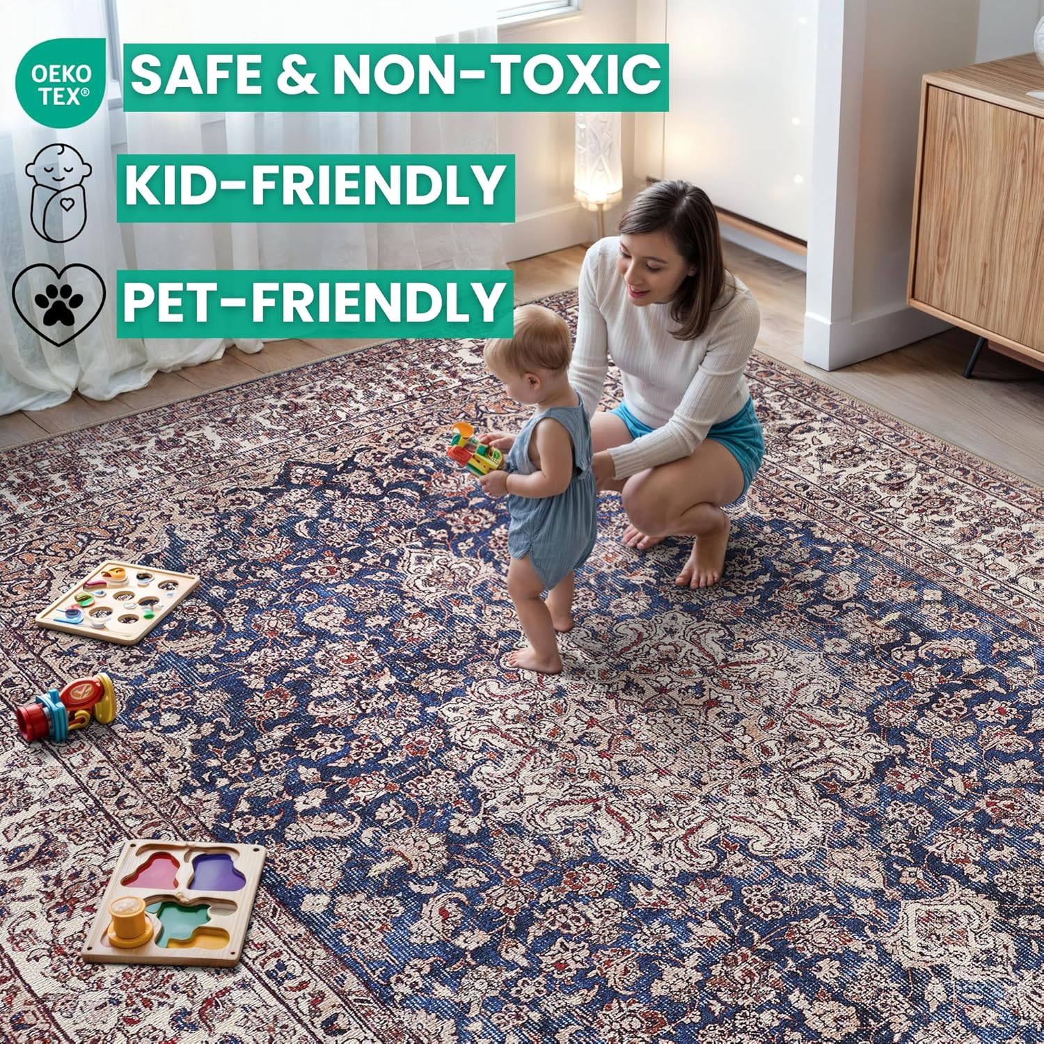 • MACHINE WASHABLE: Machine wash on delicate cycle (do not use bleach) at 85°F (30°C) and line dry or dry on air-only cycle without heat. Vacuum regularly and spot clean small stains. This easy to clean rug is perfect for families with kids and pets, and for high traffic areas.