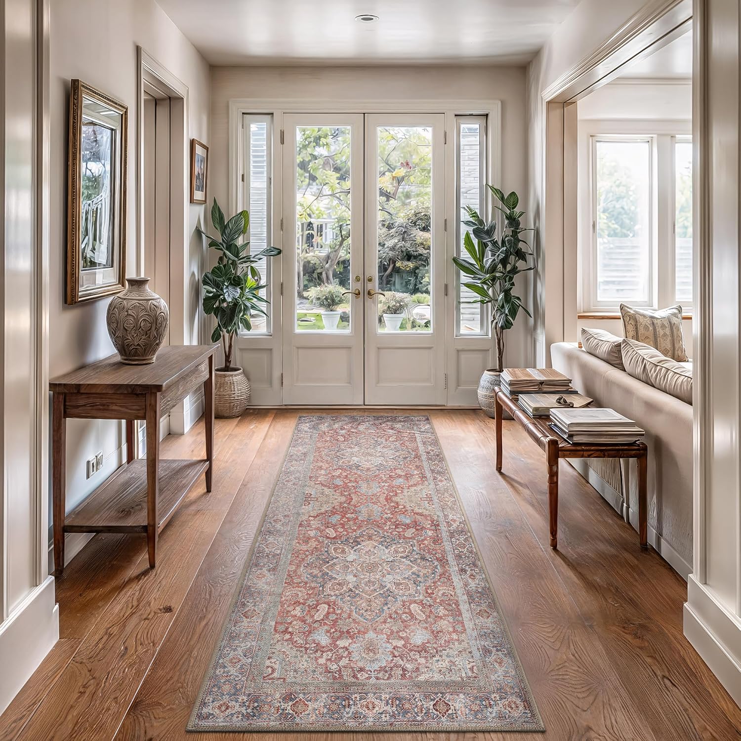 Bloom Rugs Washable Non-Slip 12 ft Runner - Red/Blue Traditional Medallion Runner for Entryway, Hallway, Bathroom, and Kitchen - Exact Size: 2.5' x 12'